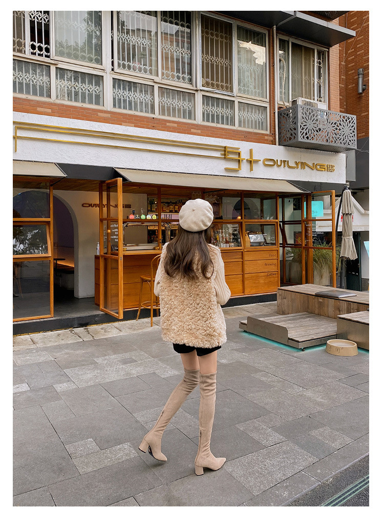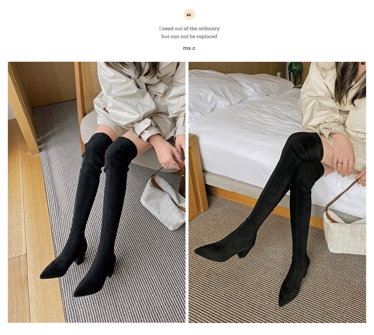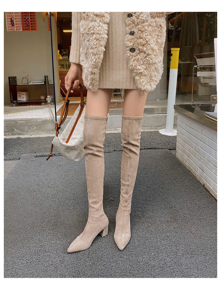 부츠 여성용 스트레치 부츠 포인팅 힐 부츠 여성용 무릎 부츠 스웨이드 하이 부츠 카키스토어 가기