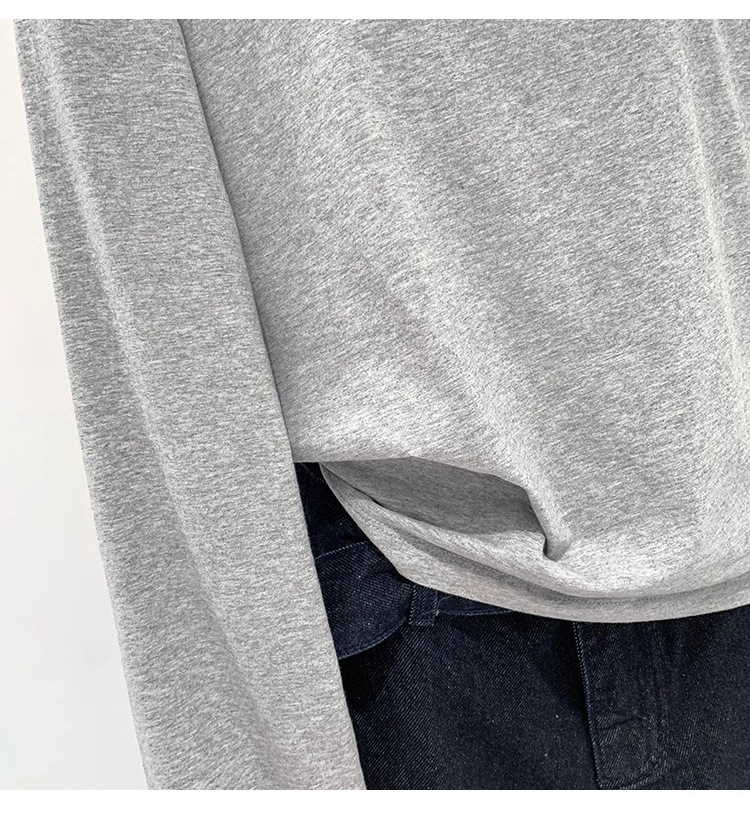 오프 숄더 코튼 긴팔 비스듬한 숄더 블랙 티셔츠 여성의 2025 년 봄 가을과 겨울 새로운 안쪽 느슨한 오프 숄더 바닥 셔츠스토어 가기
