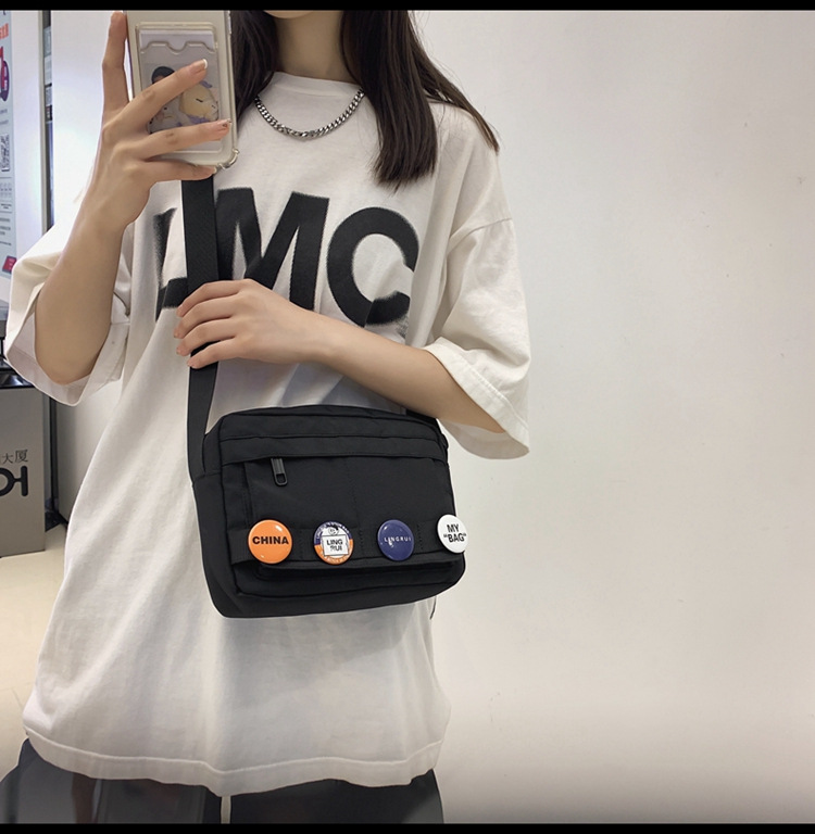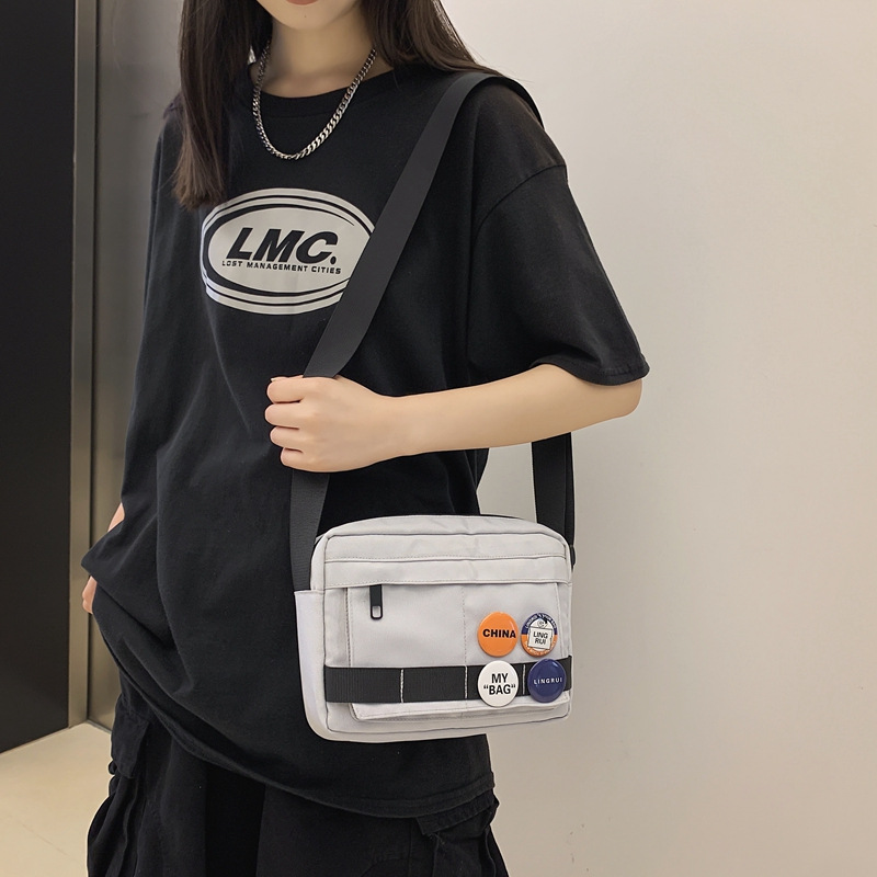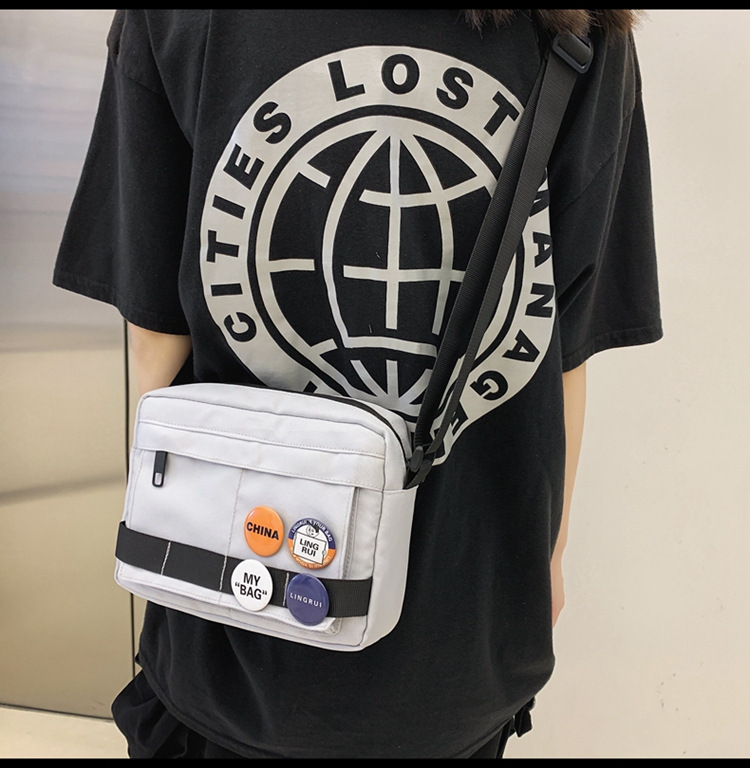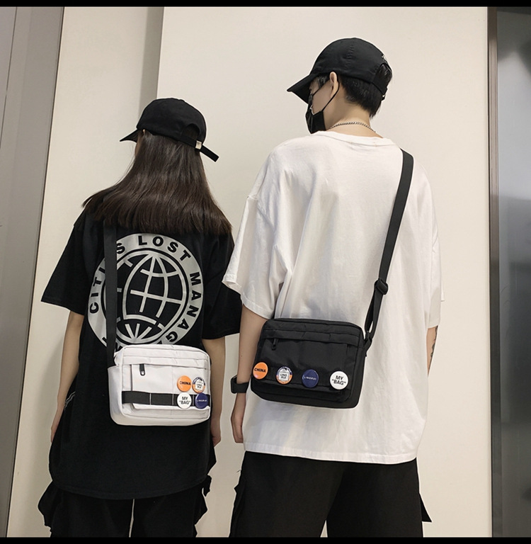 크로스 바디 백 남성 유행 브랜드 Ins 유행 작은 가방 여성 스트리트 패션 싱글 숄더 백 캐주얼 일본 학생 캔버스 작은 사첼