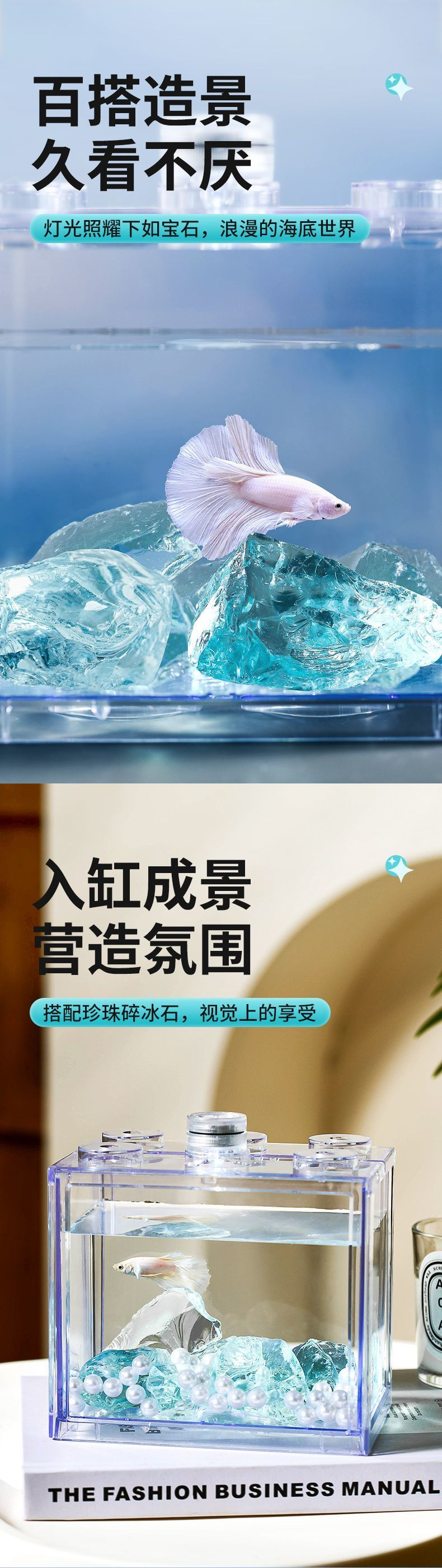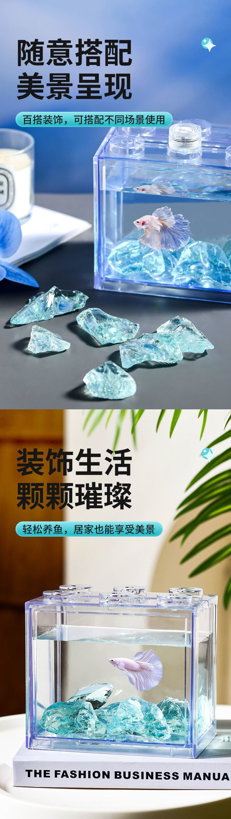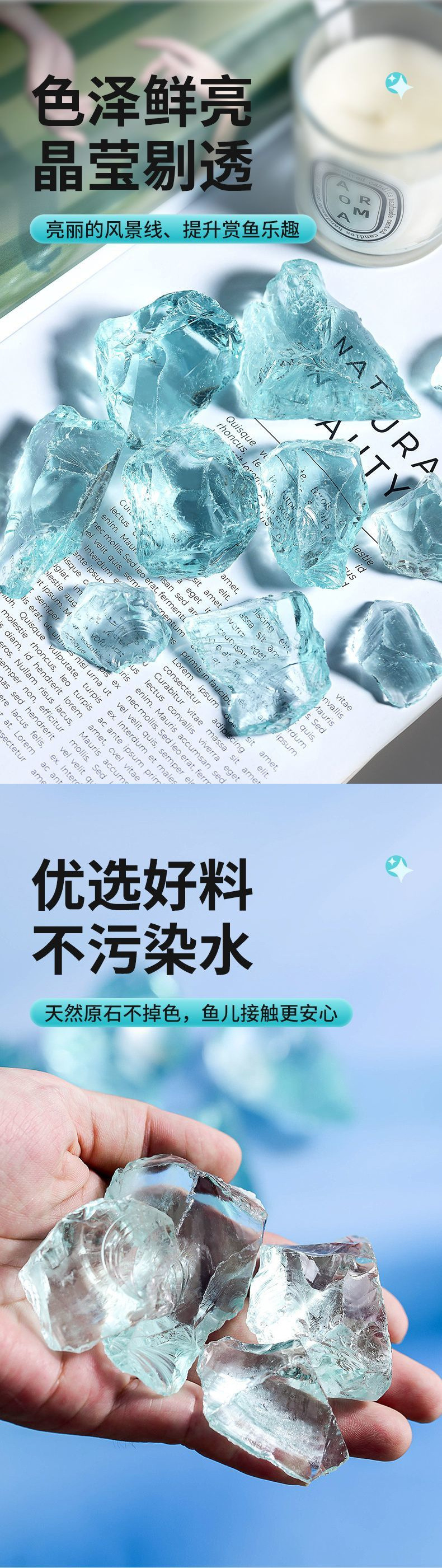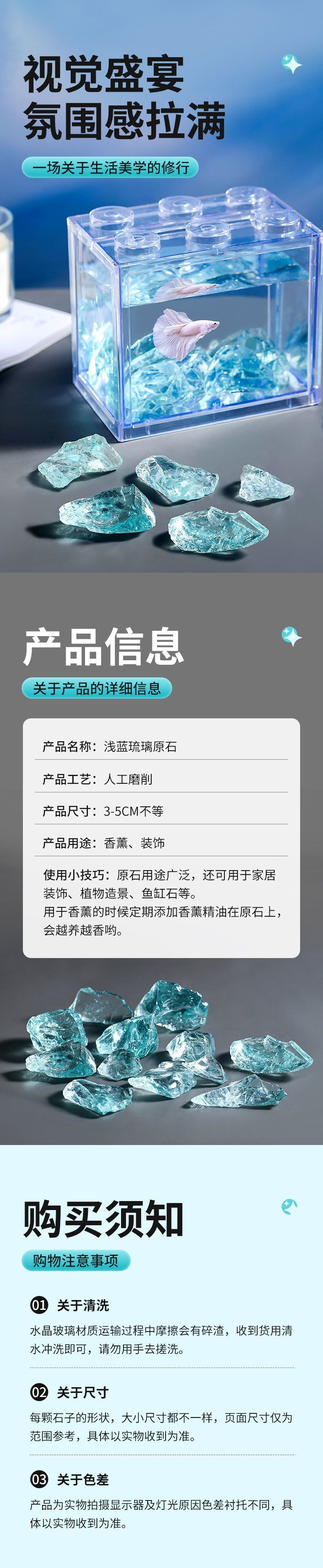 크리스탈 유리 물고기 탱크 조경 아이스 블루 크리스탈 원시 돌 마이크로 풍경 창조적 인 수족관 바닥 모래 깔기 돌 장식품스토어 가기