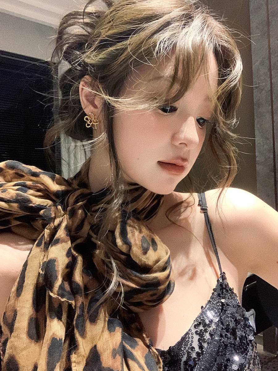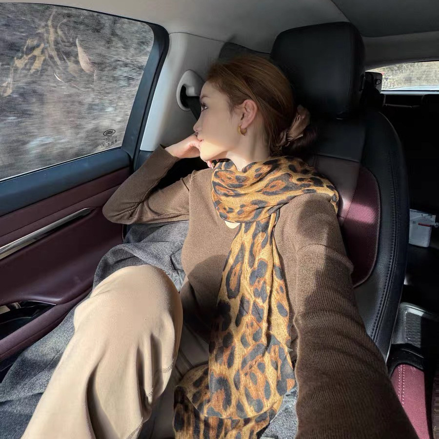 같은 스타일의 Celi * e 바람 광장 ~ 미국 뜨거운 소녀 바람 표범 목도리 여성 복고풍 순수한 바람 긴 스카프스토어 가기