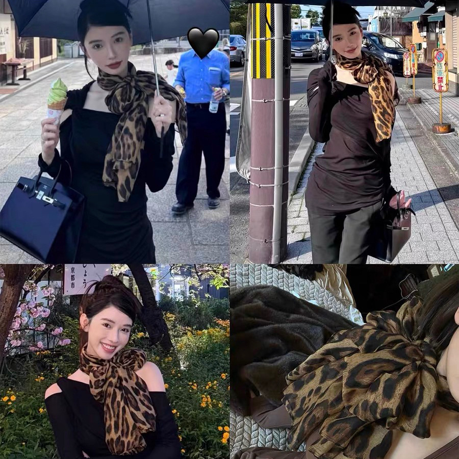 같은 스타일의 Celi * e 바람 광장 ~ 미국 뜨거운 소녀 바람 표범 목도리 여성 복고풍 순수한 바람 긴 스카프