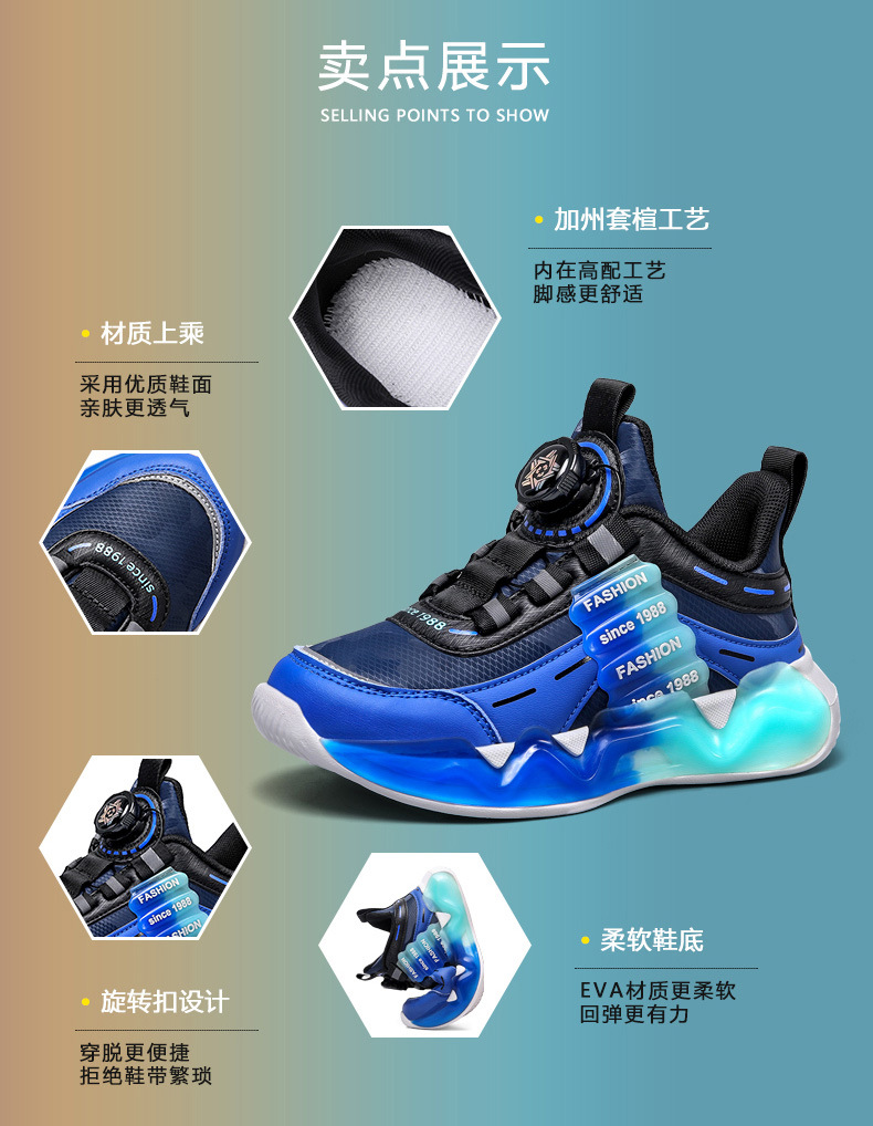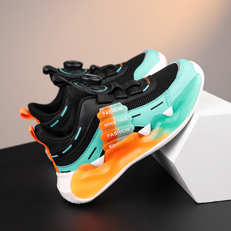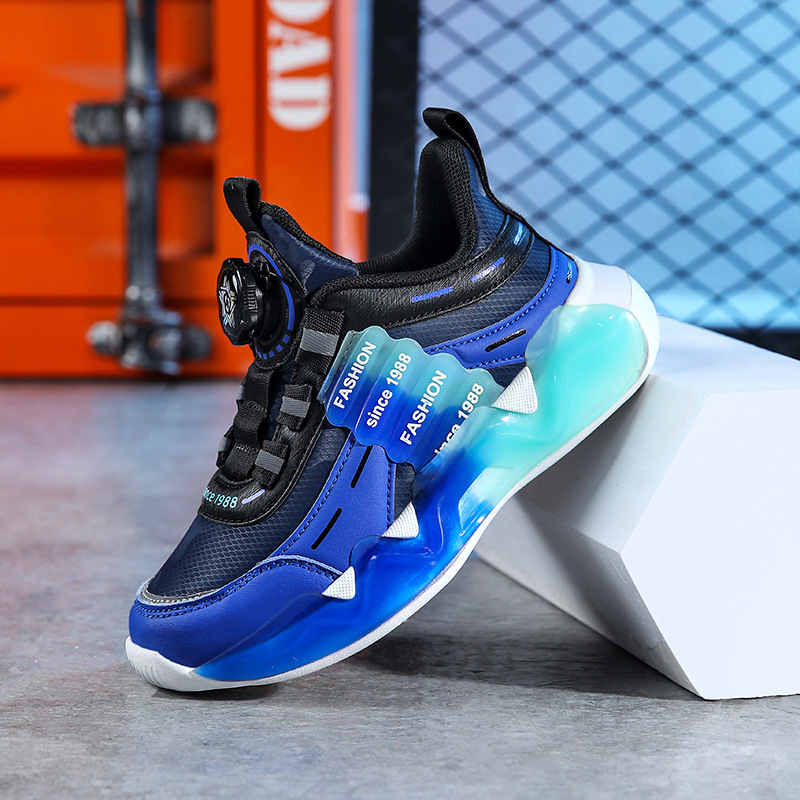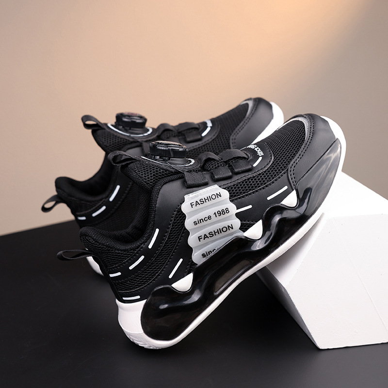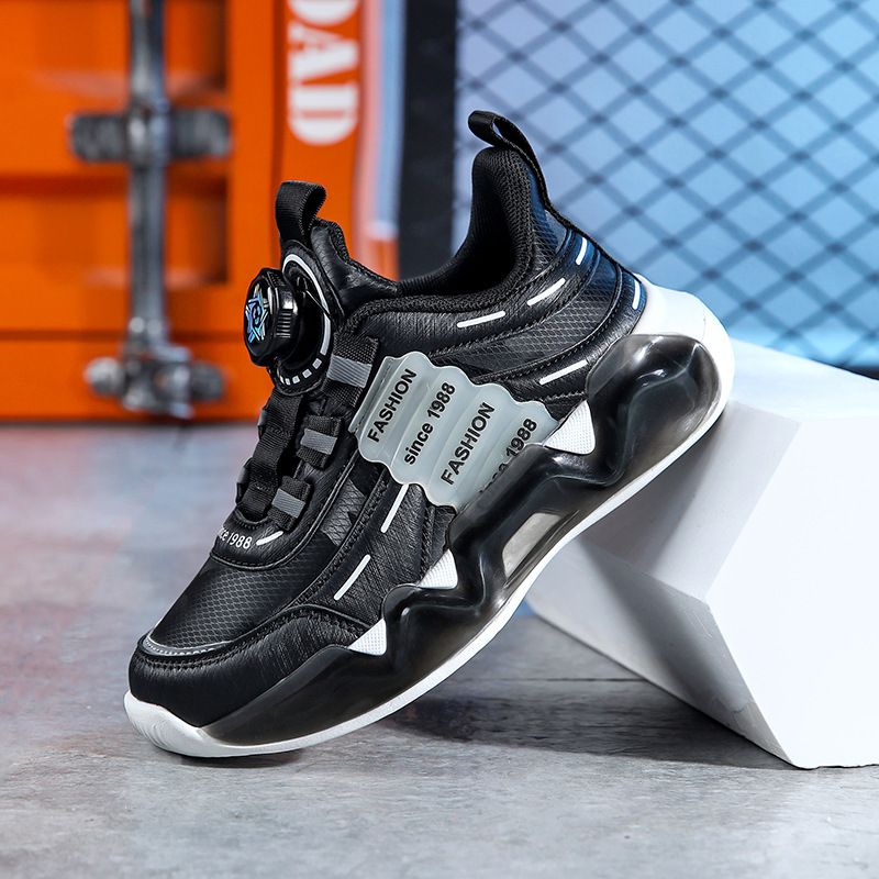 소년 신발 2024 가을 새로운 어린이 회전 버클 미끄럼 방지 운동화 중 큰 소년 가죽 농구 신발스토어 가기
