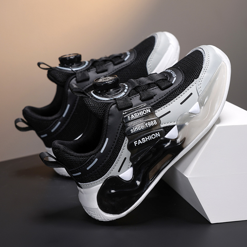 소년 신발 2024 가을 새로운 어린이 회전 버클 미끄럼 방지 운동화 중 큰 소년 가죽 농구 신발
