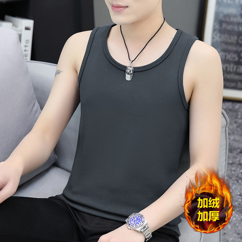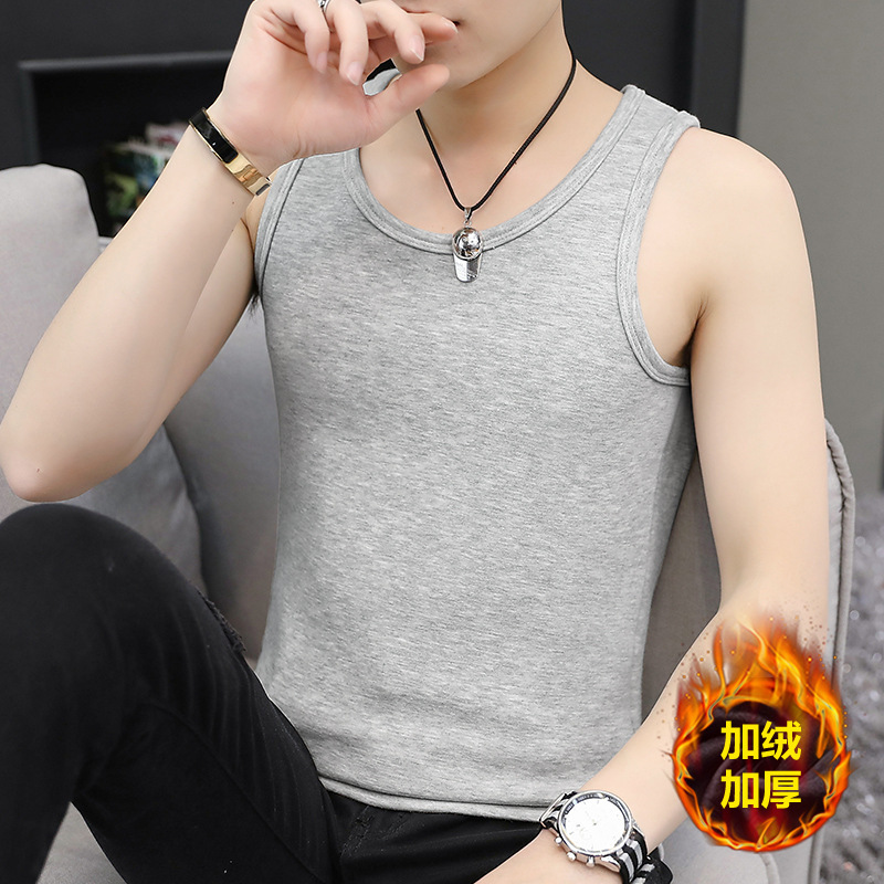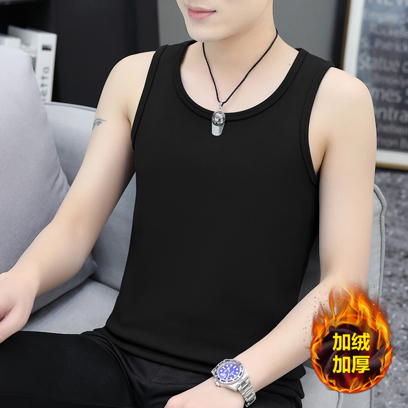 가을과 겨울 따뜻한 조끼 남성용 기모 두꺼운 꽉 끼는 반소매 베이스 면 허리 코트 단열 속옷스토어 가기