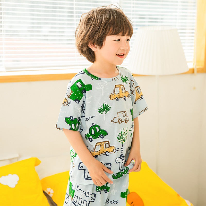 신형 남녀 아동복 면화 여름 얇은 집 옷 잠옷 세트 어린이 반바지 에어컨 옷스토어 가기