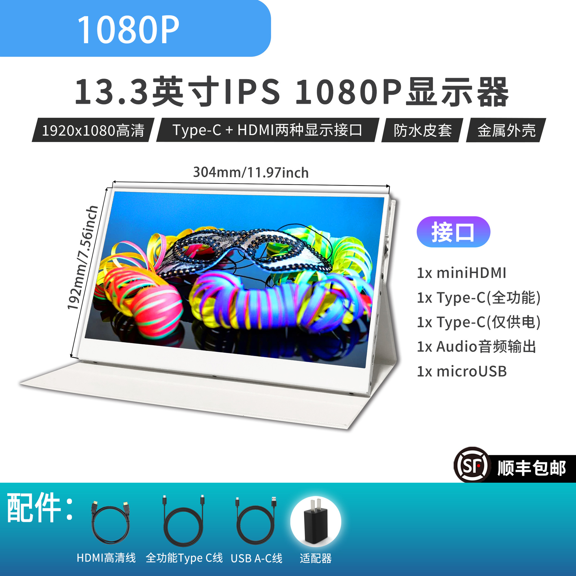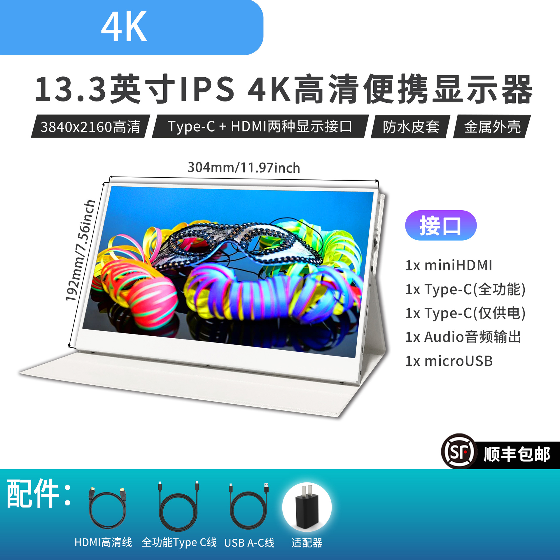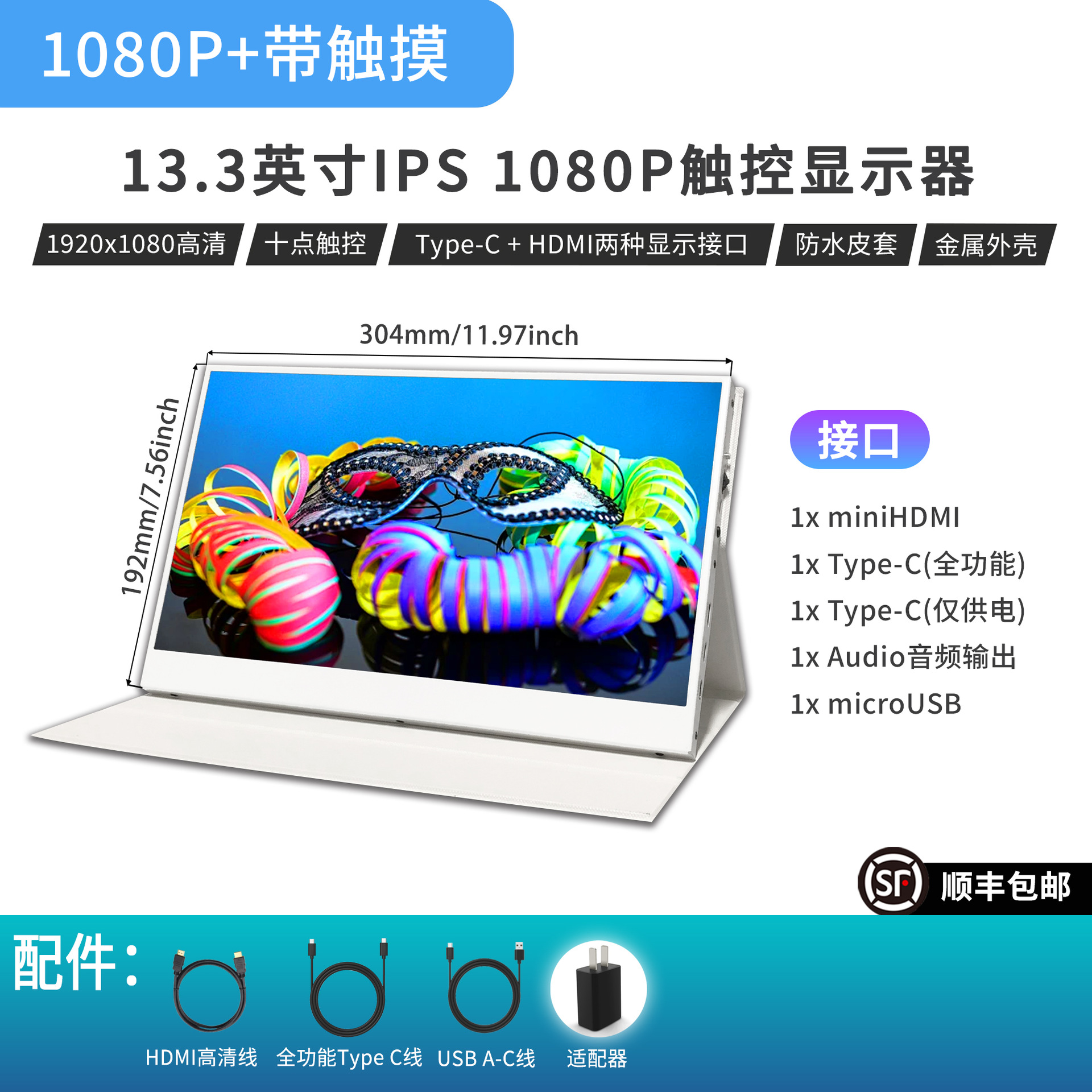 13.3inch 휴대용 디스플레이 4K 초고화질 1080P 원라인 터치스크린 확장 노트북 보조 화면