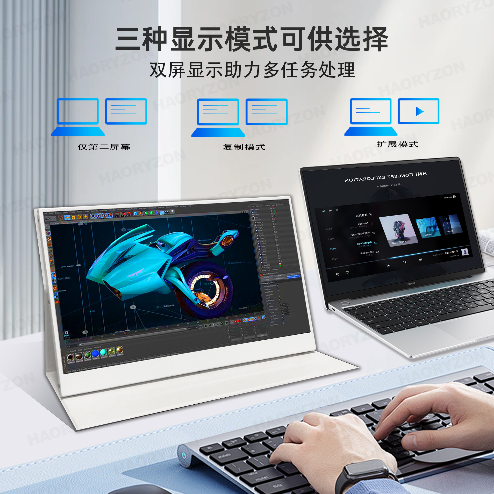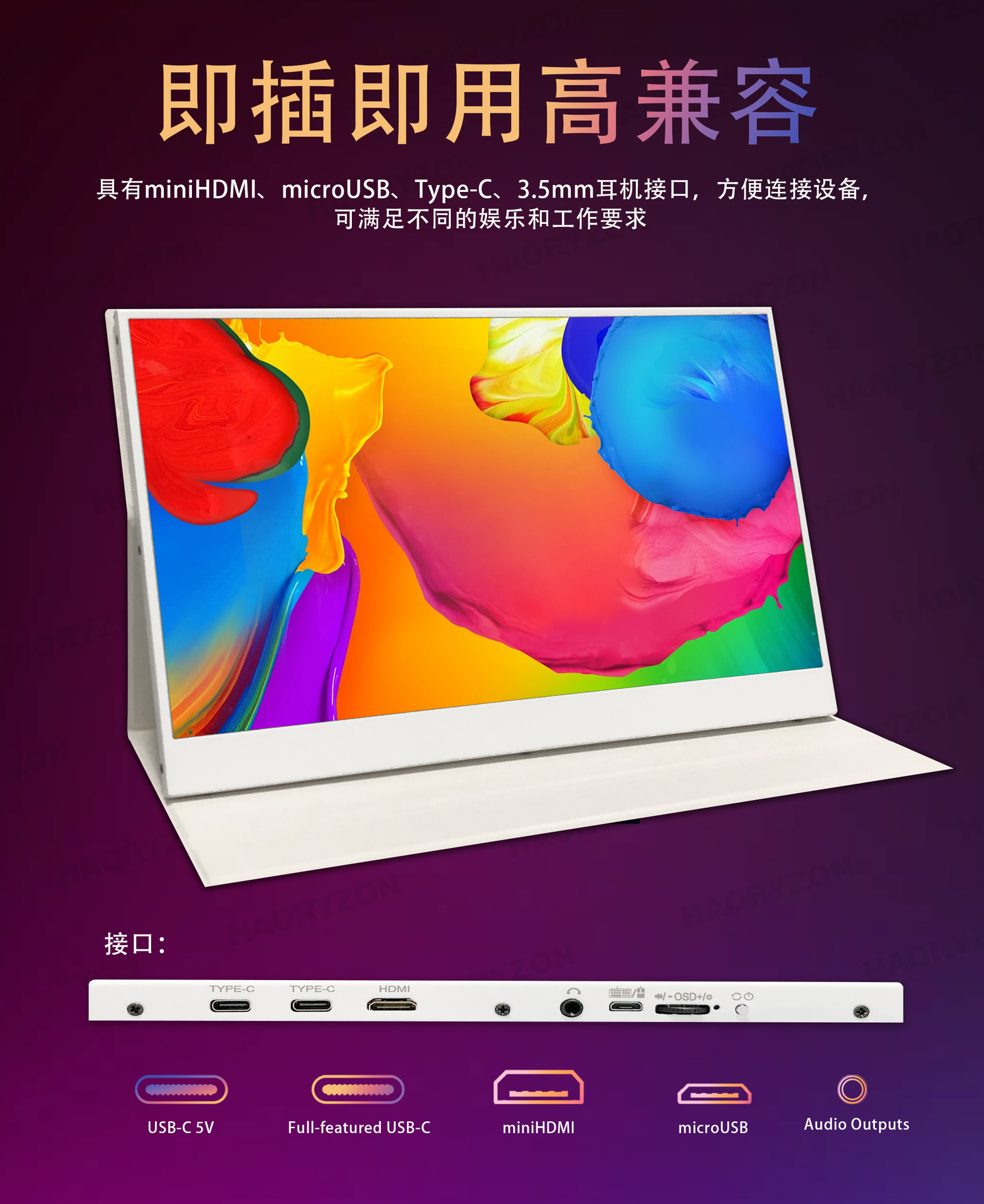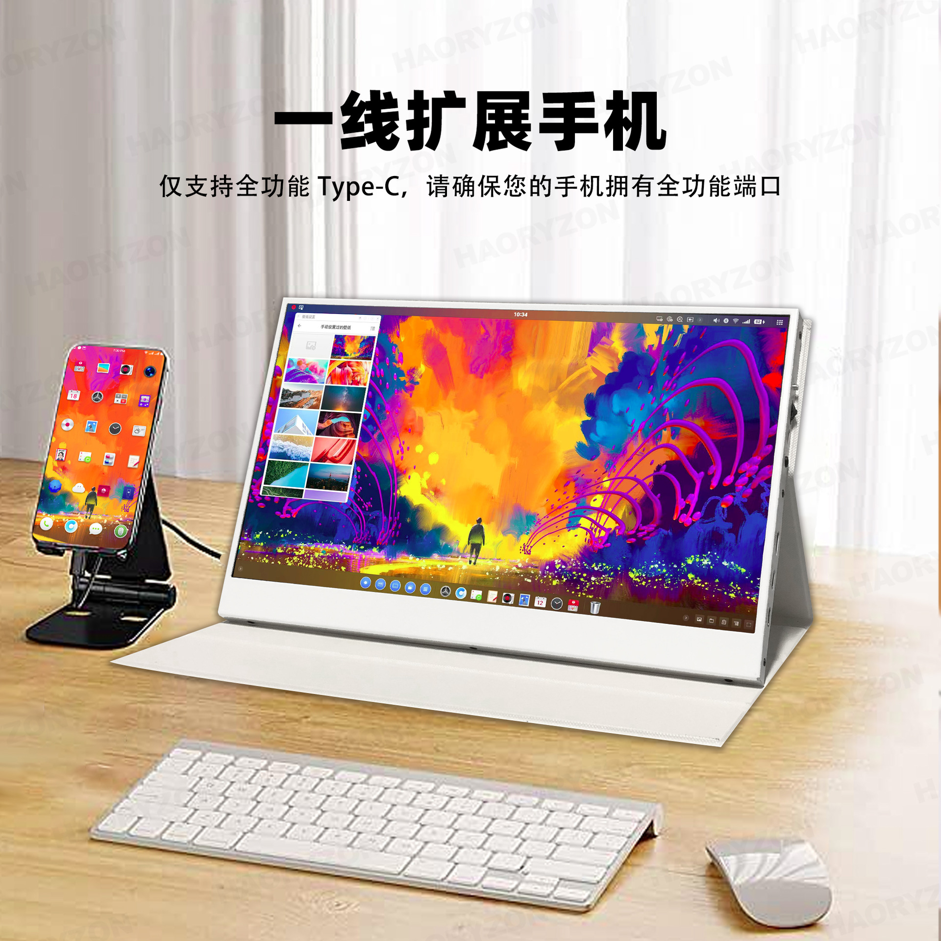 13.3inch 휴대용 디스플레이 4K 초고화질 1080P 원라인 터치스크린 확장 노트북 보조 화면