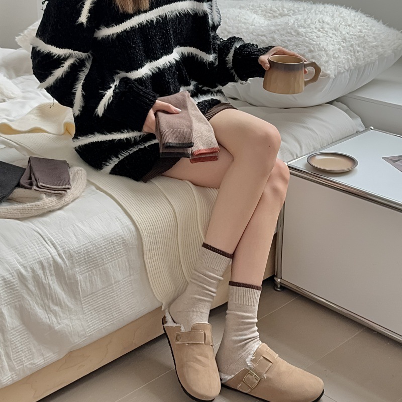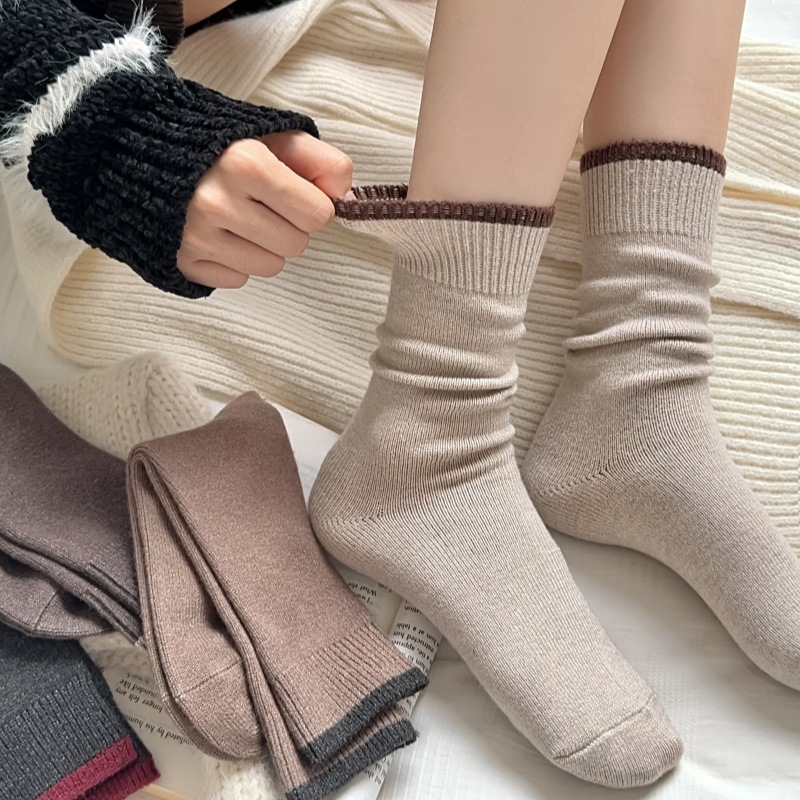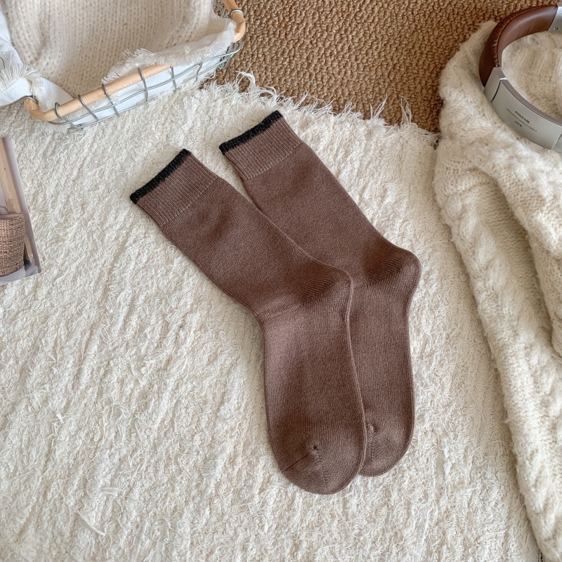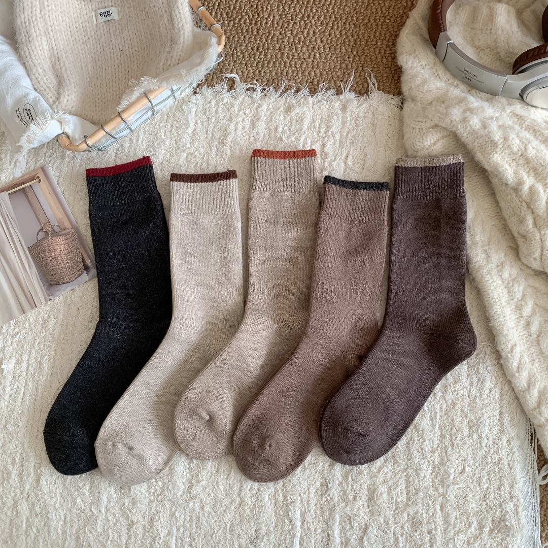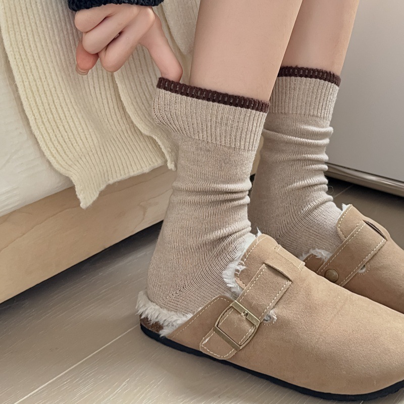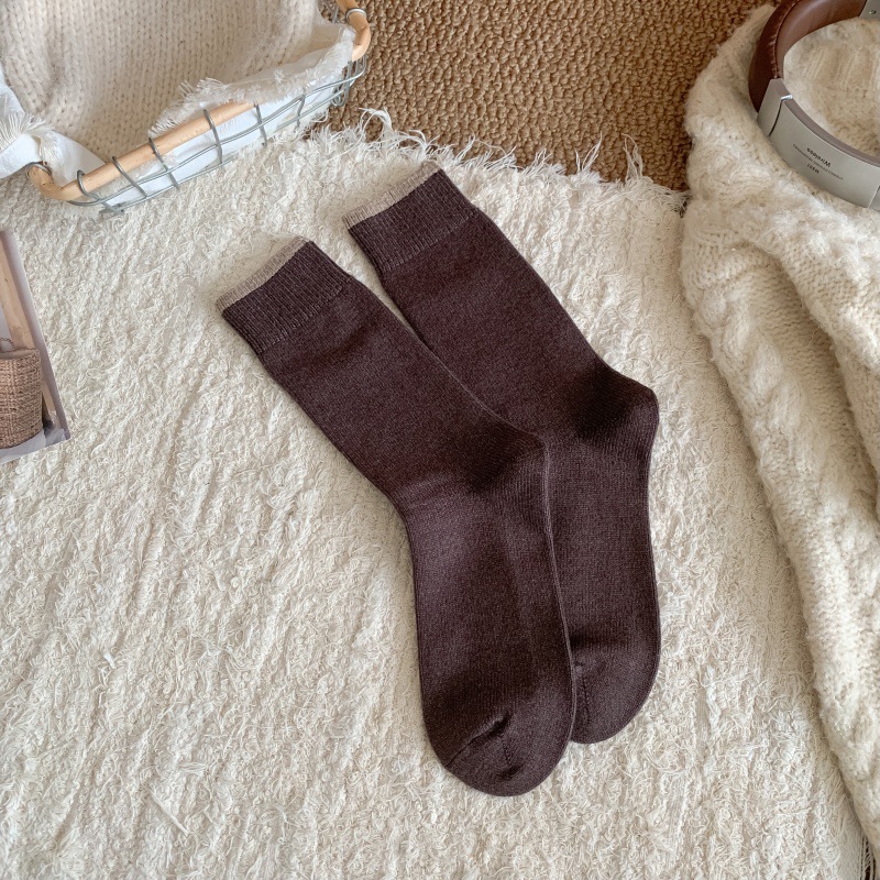 여성용 가을 겨울 양말, 러플 컬러 매칭 모조 캐시미어 여성용 종아리 중간 양말, 커피 스타일, 여성용 다용도 복고풍 파일 길이 양말스토어 가기
