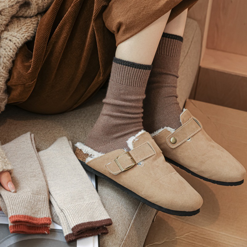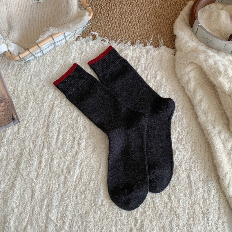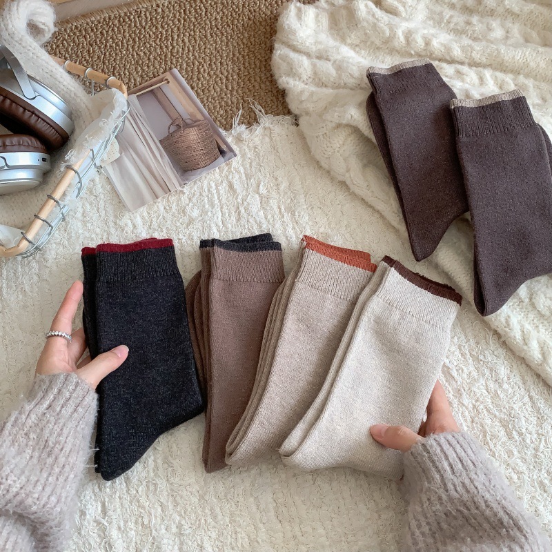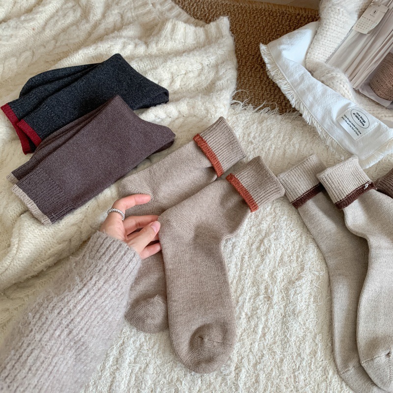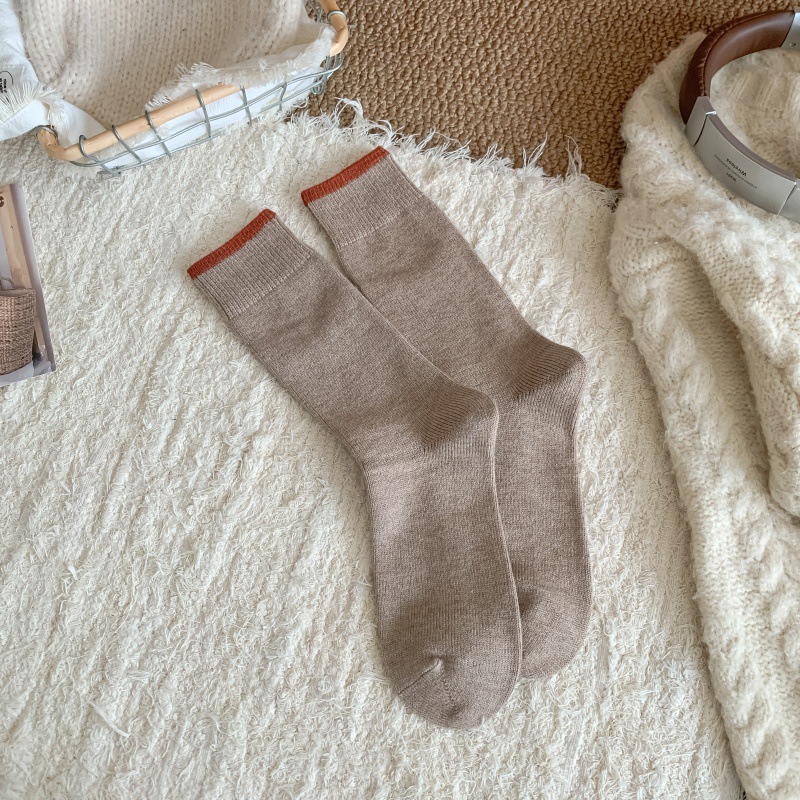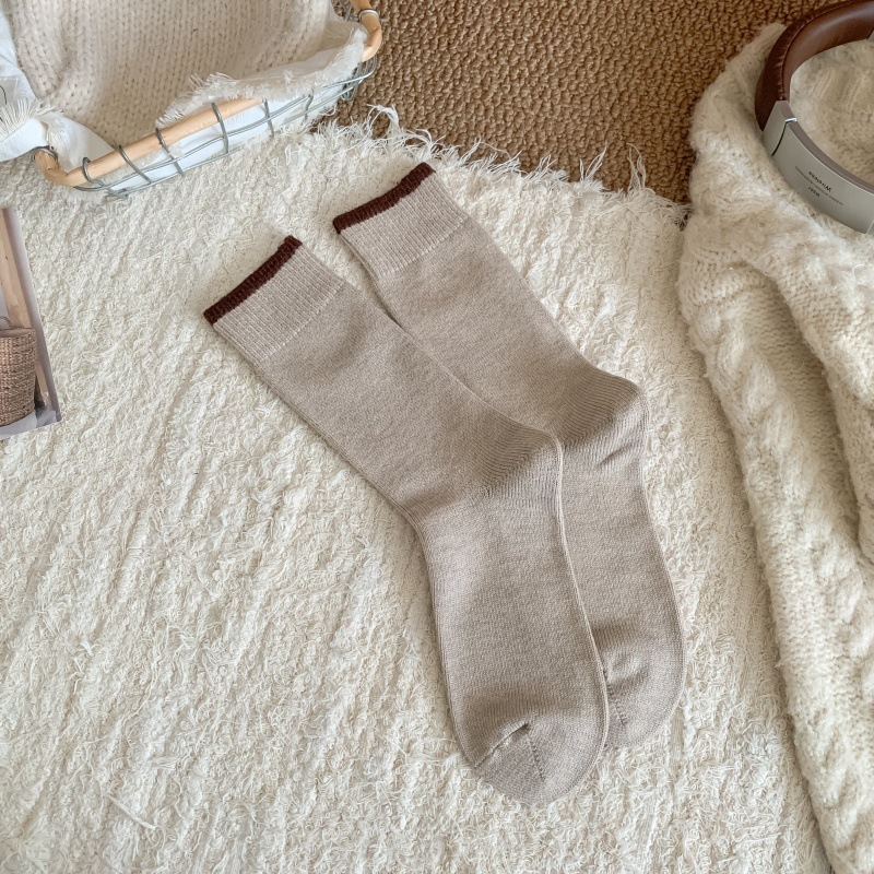 여성용 가을 겨울 양말, 러플 컬러 매칭 모조 캐시미어 여성용 종아리 중간 양말, 커피 스타일, 여성용 다용도 복고풍 파일 길이 양말스토어 가기