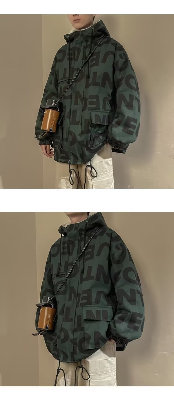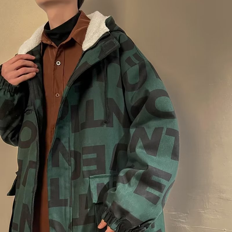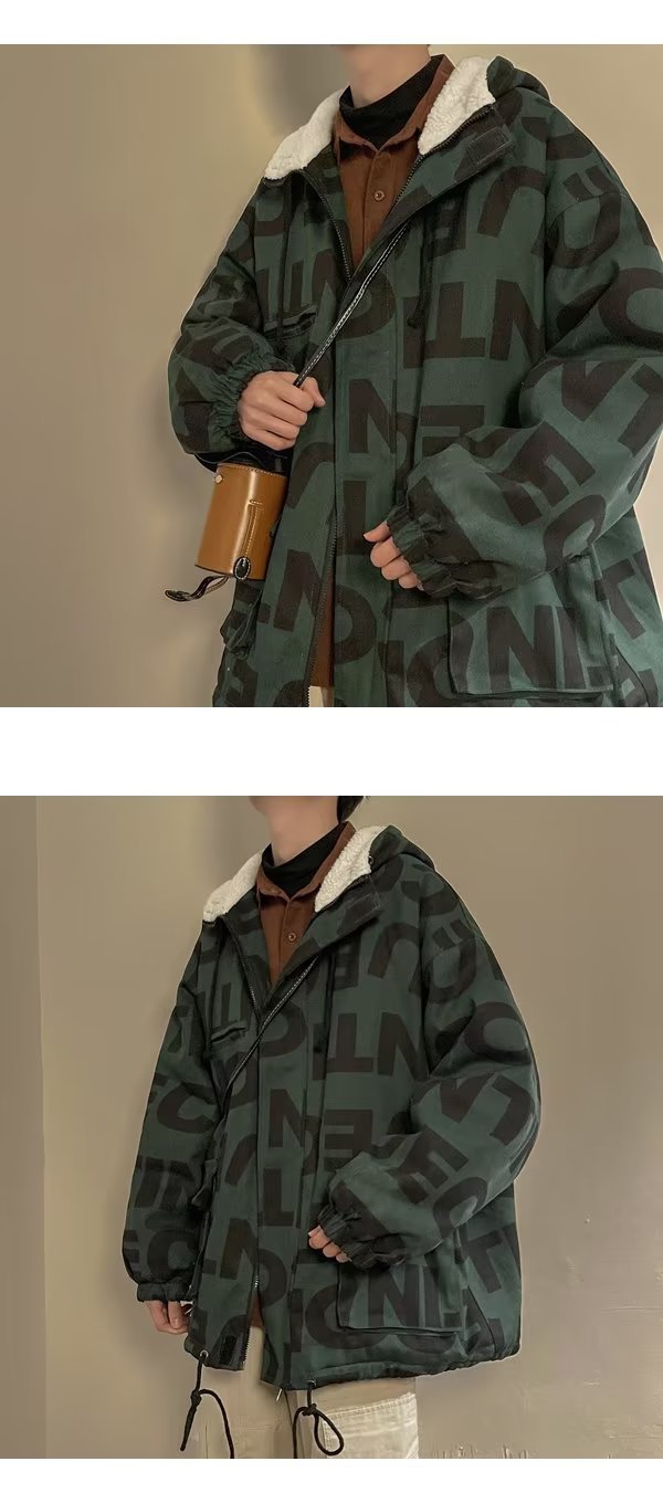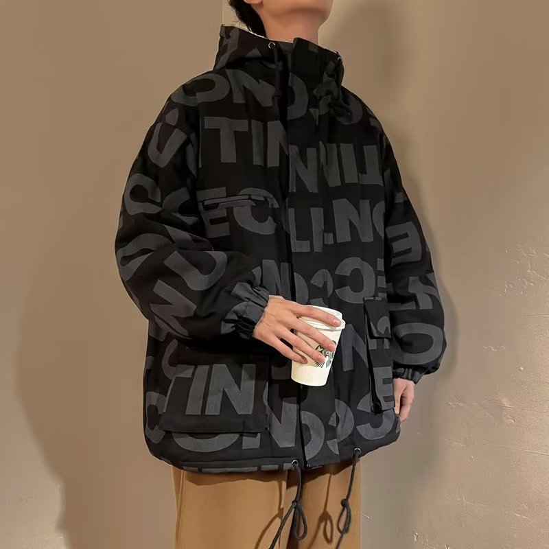 편지 인쇄 코튼 패딩 코트 가을과 겨울 새로운 두꺼운 따뜻한 코트 트렌디 인 느슨한 캐주얼 플러스 사이즈 코튼 패딩 코트 양털