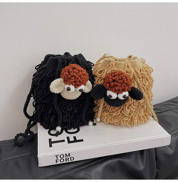 어린이 가방 귀여운 만화 양고기 휴대용 양모 가방 독특한 재미 부모 자식 크로스 바디 버킷 가방스토어 가기