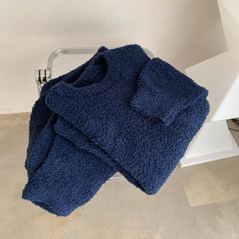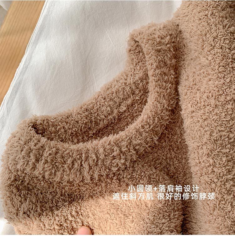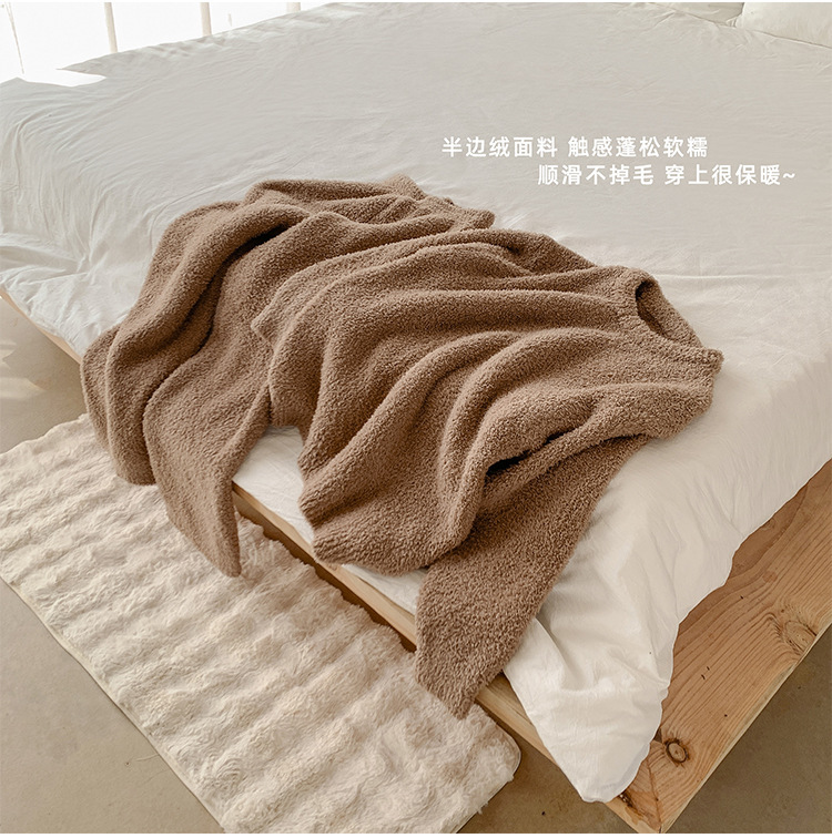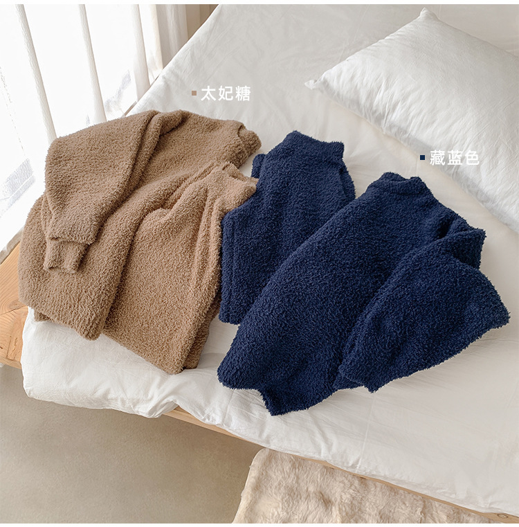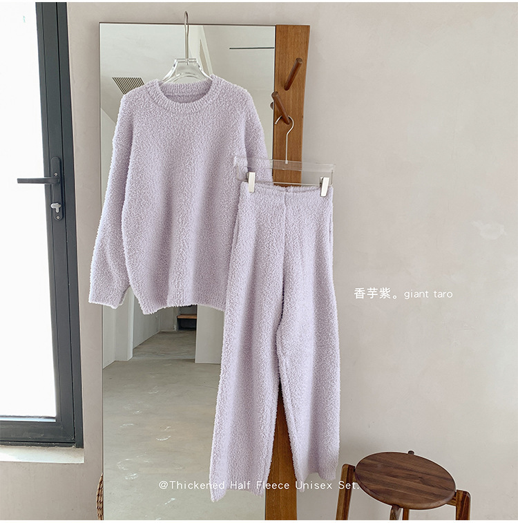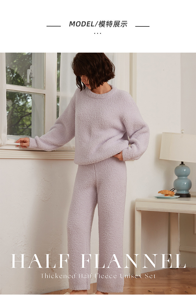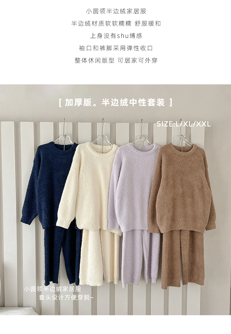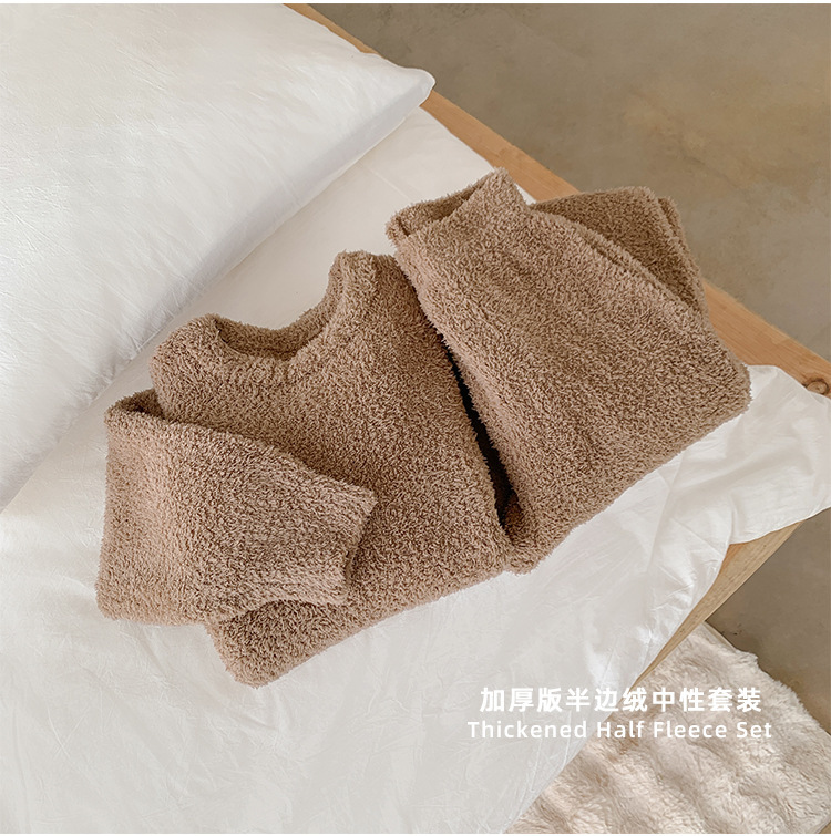 가을과 겨울 세트 반 벨벳 중성 가정 옷 새 따뜻한 패딩 파자마는 부부의 집 옷 밖에서 입을 수 있습니다.스토어 가기