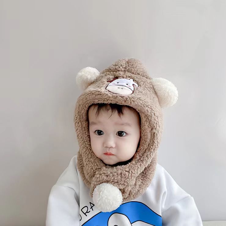 아기 모자 스카프 통합 가을과 겨울 귀여운 슈퍼 귀여운 소년 아기 모자 봉제 귀 보호 모자 기모 겨울