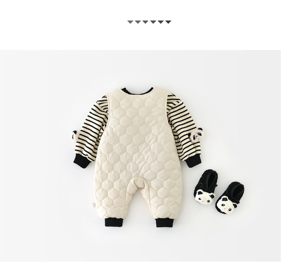 2025秋季新款儿童卡通连身衣 新生儿条纹脱卸领长袖爬服53566
