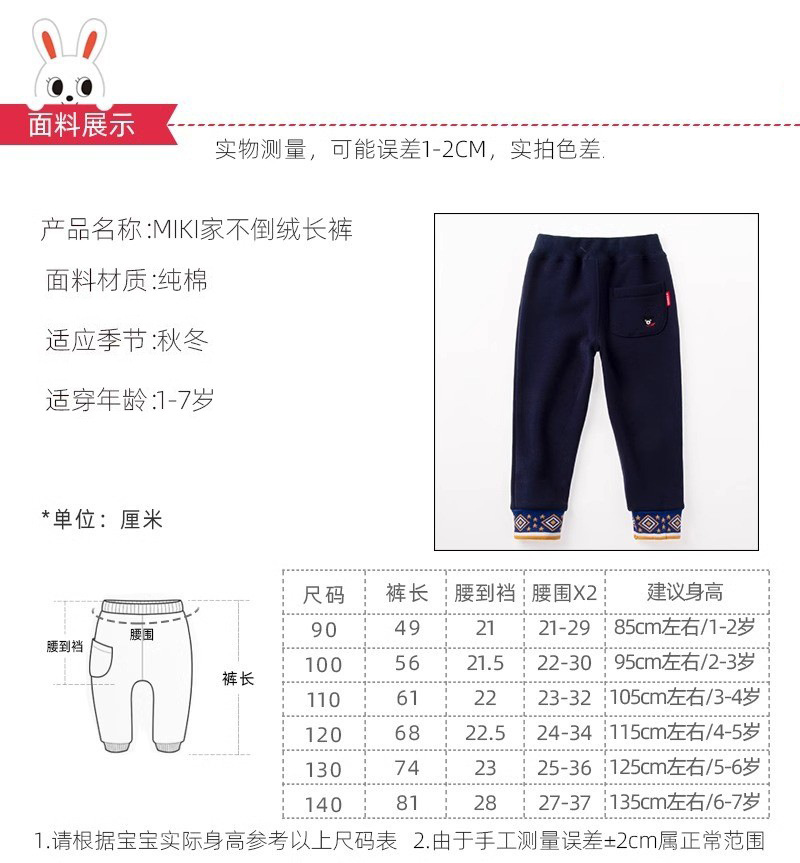 수출 기모 가을과 겨울 새로운 소년 소녀 따뜻한 바지 반전 캐주얼 스포츠 바지 바지 90-140cm스토어 가기