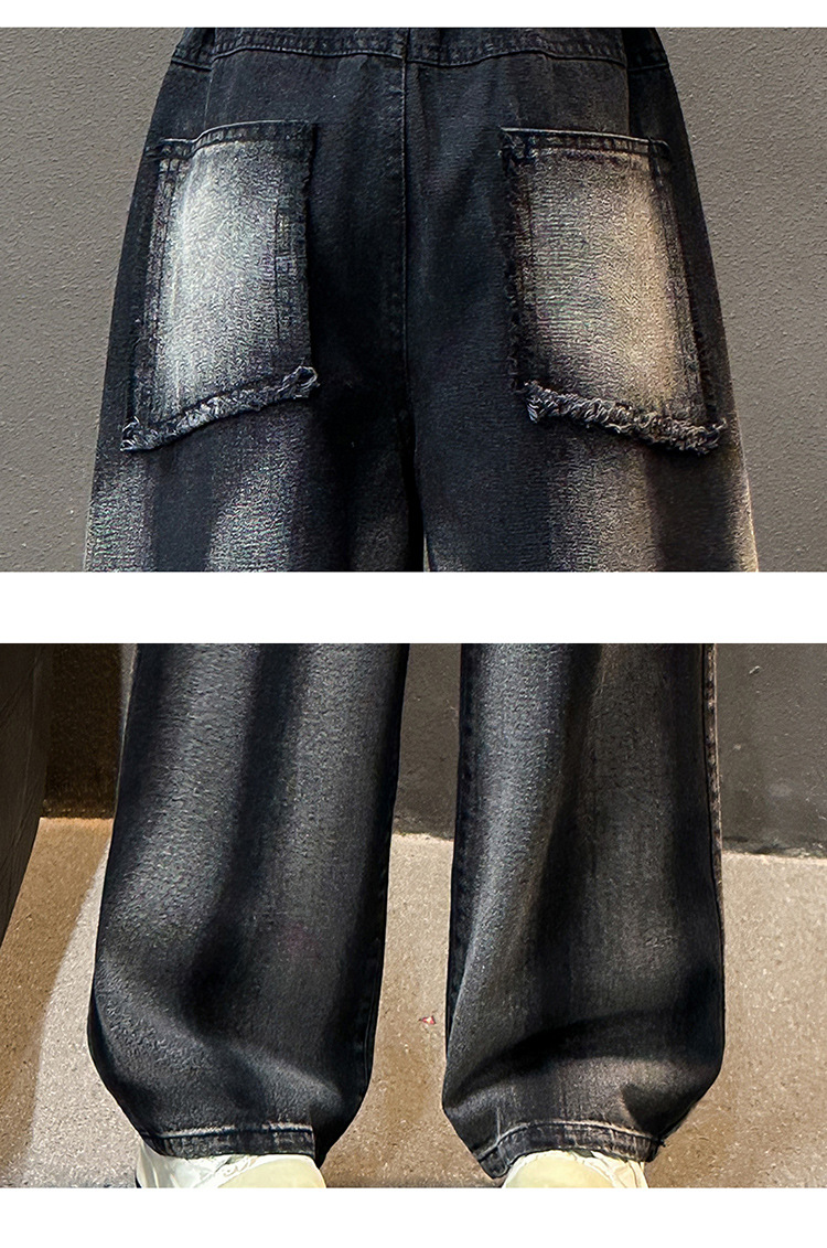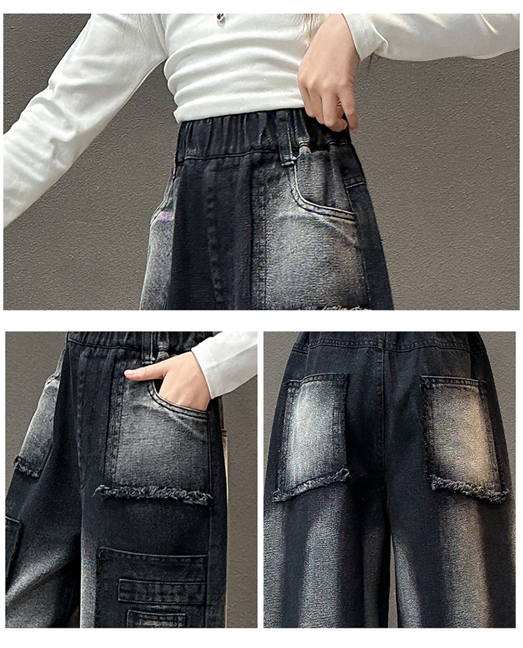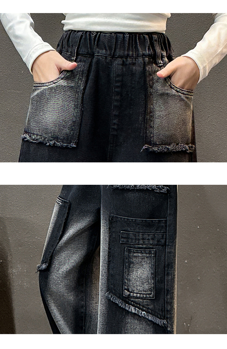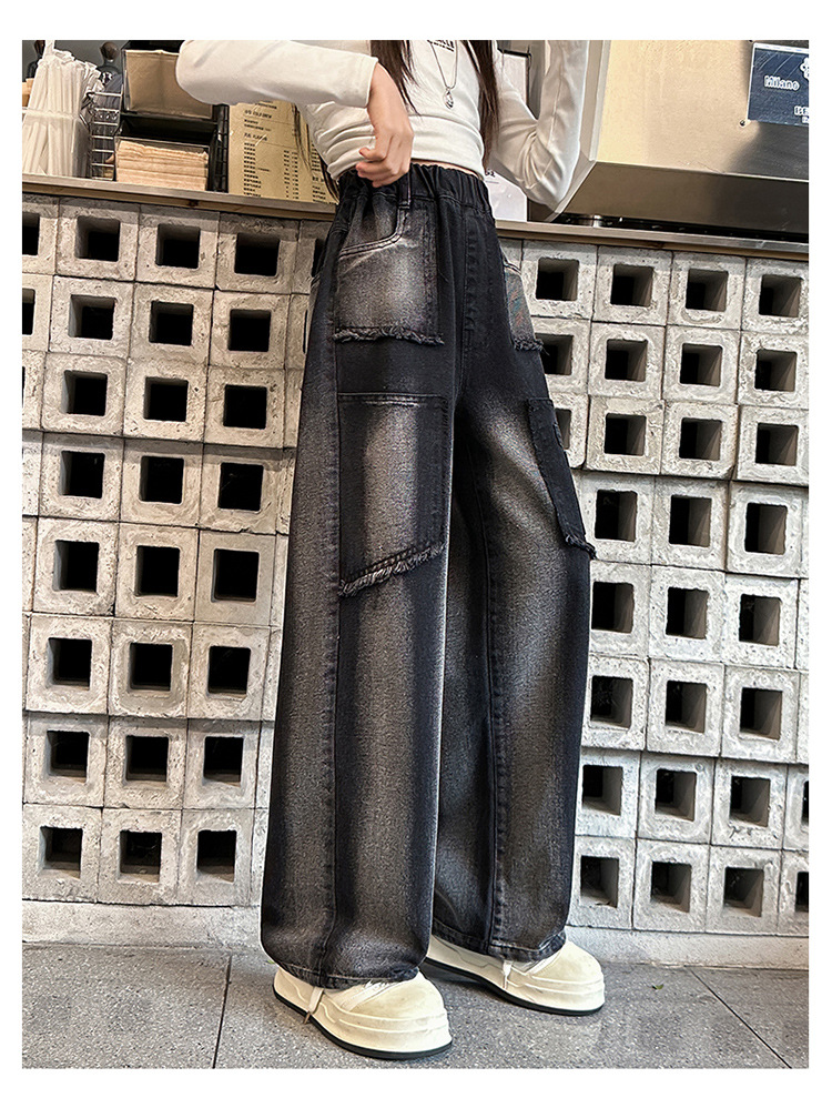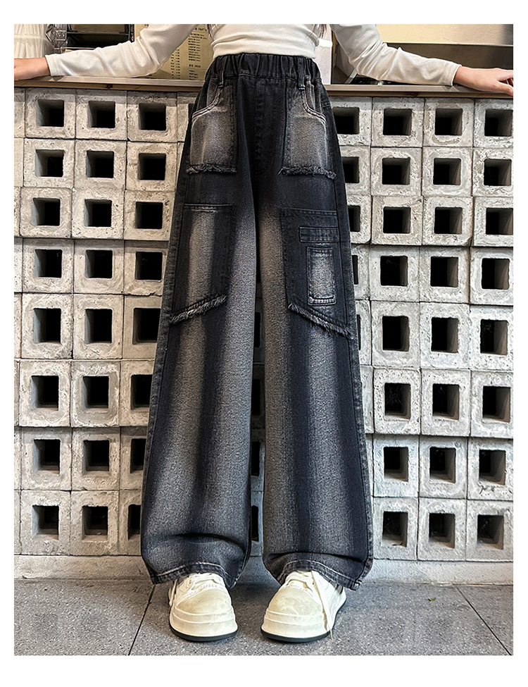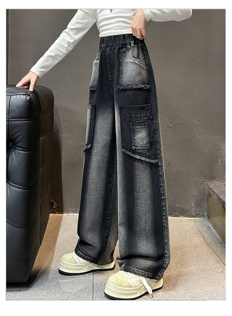 소녀 가을 바지 2024 새로운 서양 스타일 초가을 큰 어린이 가을 청바지 어린이 봄과 가을 스트레이트 와이드 다리 바지스토어 가기