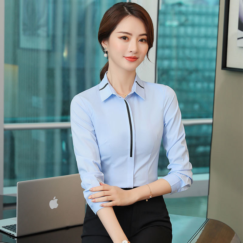 흰색 전문 셔츠 여성 긴팔 인터뷰 원피스 2024 봄과 가을 새로운 슬림핏 작업 옷 작업복 기본 셔츠