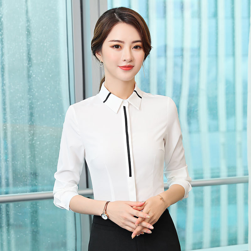 흰색 전문 셔츠 여성 긴팔 인터뷰 원피스 2024 봄과 가을 새로운 슬림핏 작업 옷 작업복 기본 셔츠스토어 가기