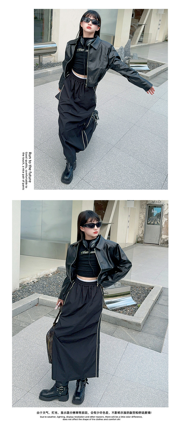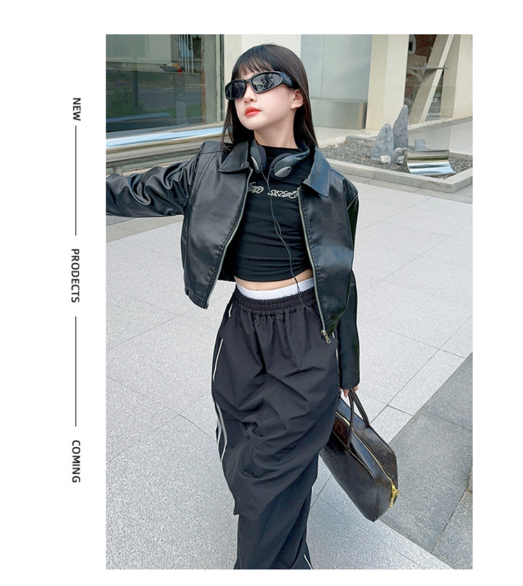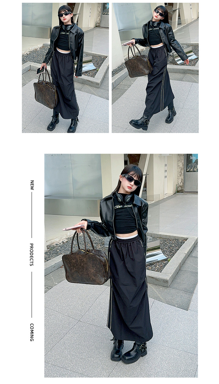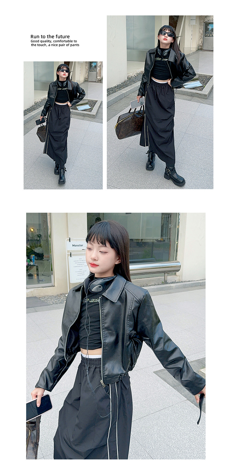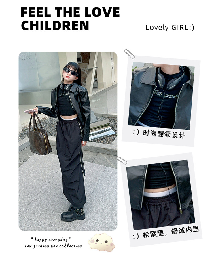 소녀 가죽 코트 2024 가을 새로운 스타일 중대형 어린이 자전거 코트 디자인 센스 봄과 가을 틈새 자켓 최고 트렌디스토어 가기