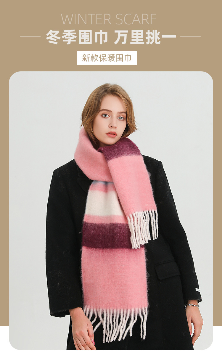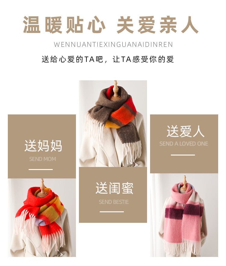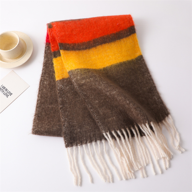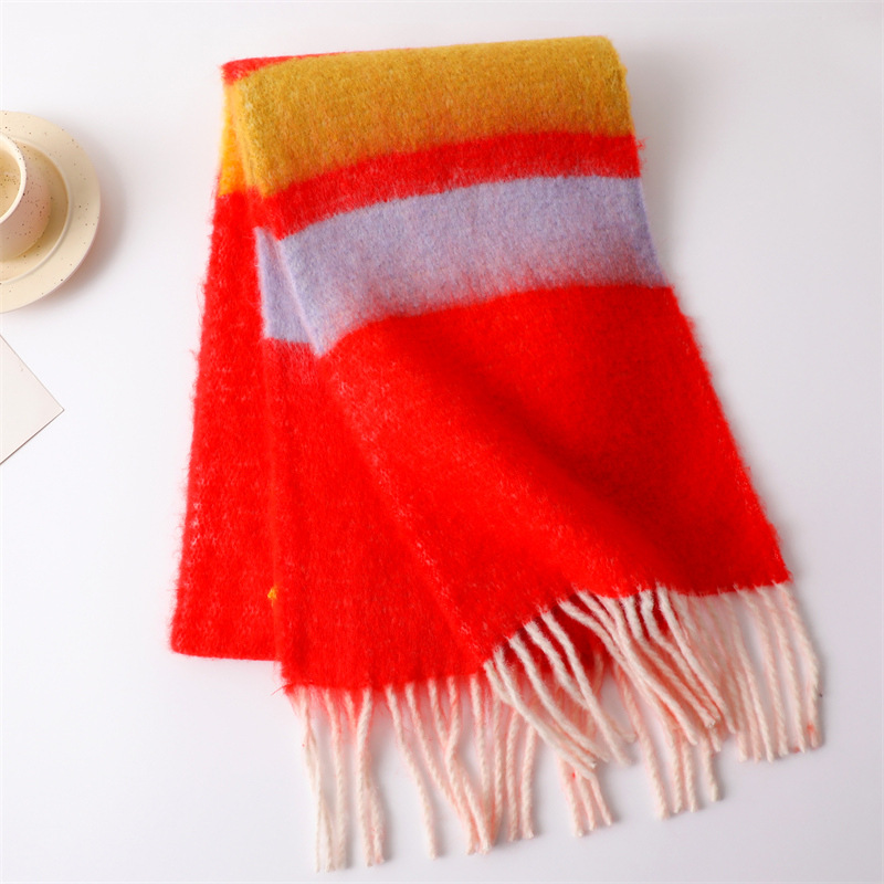 남성과 여성을위한 새로운 스타일 모방 캐시미어 따뜻한 목도리 스카프 가을 및 겨울 올 매치 레인보우 스트립 술 서클 원사 스카프스토어 가기