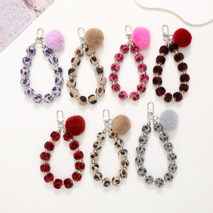 秋冬新款韩版毛绒圆球挂件手工串珠手机挂饰挂件短款手环防丢链女