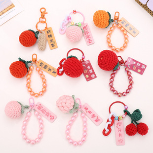 热卖手工编织毛线柿子好事发生钥匙扣挂件毛线钩织桃你欢心挂饰