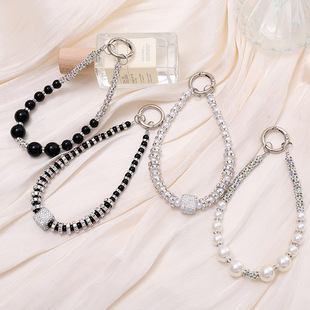 热卖时尚百搭手工串珠手机链水钻饰品挂件轻奢高级感手机壳挂饰女