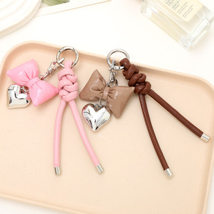 新款PU皮革蝴蝶结钥匙扣挂件手机壳挂链ins时尚包包挂饰手机挂绳