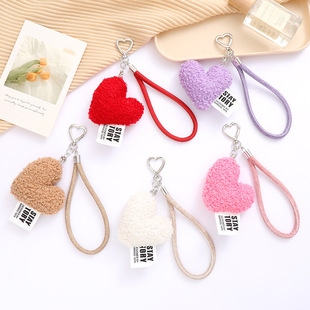 创意新款仿羊毛绒爱心钥匙扣挂件秋冬热卖箱包挂饰配件手机挂绳