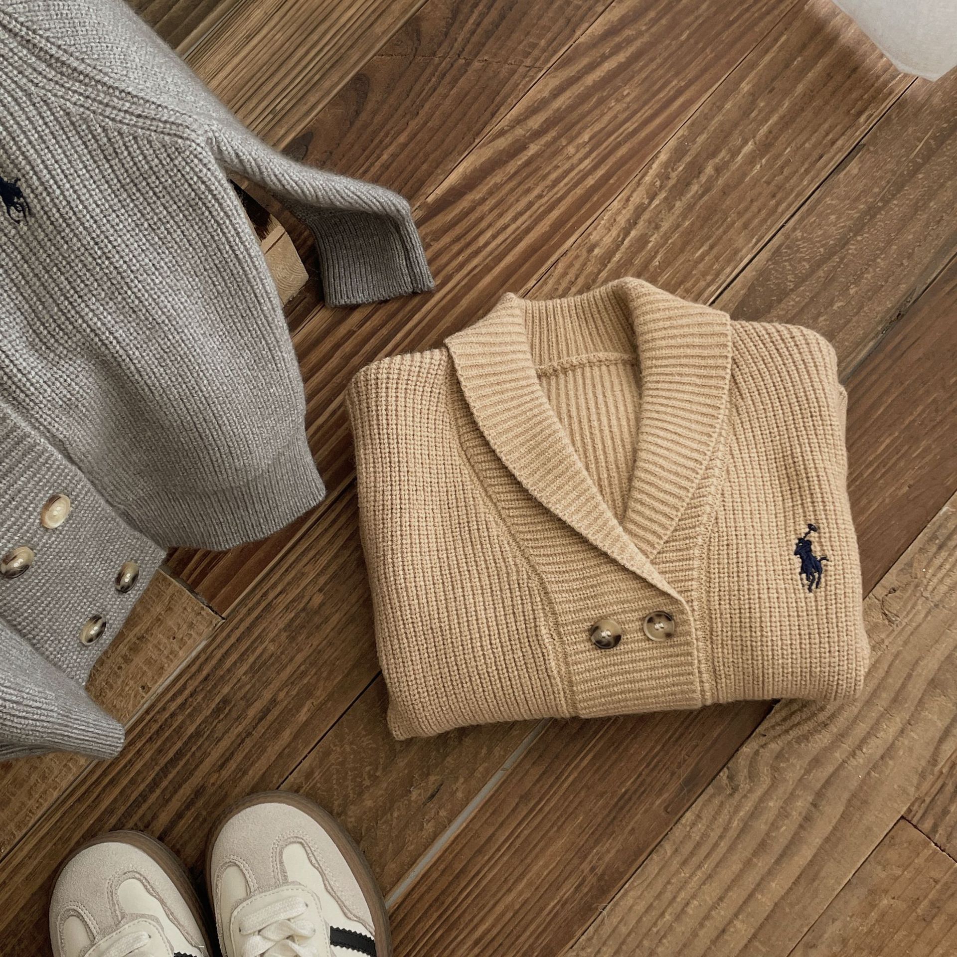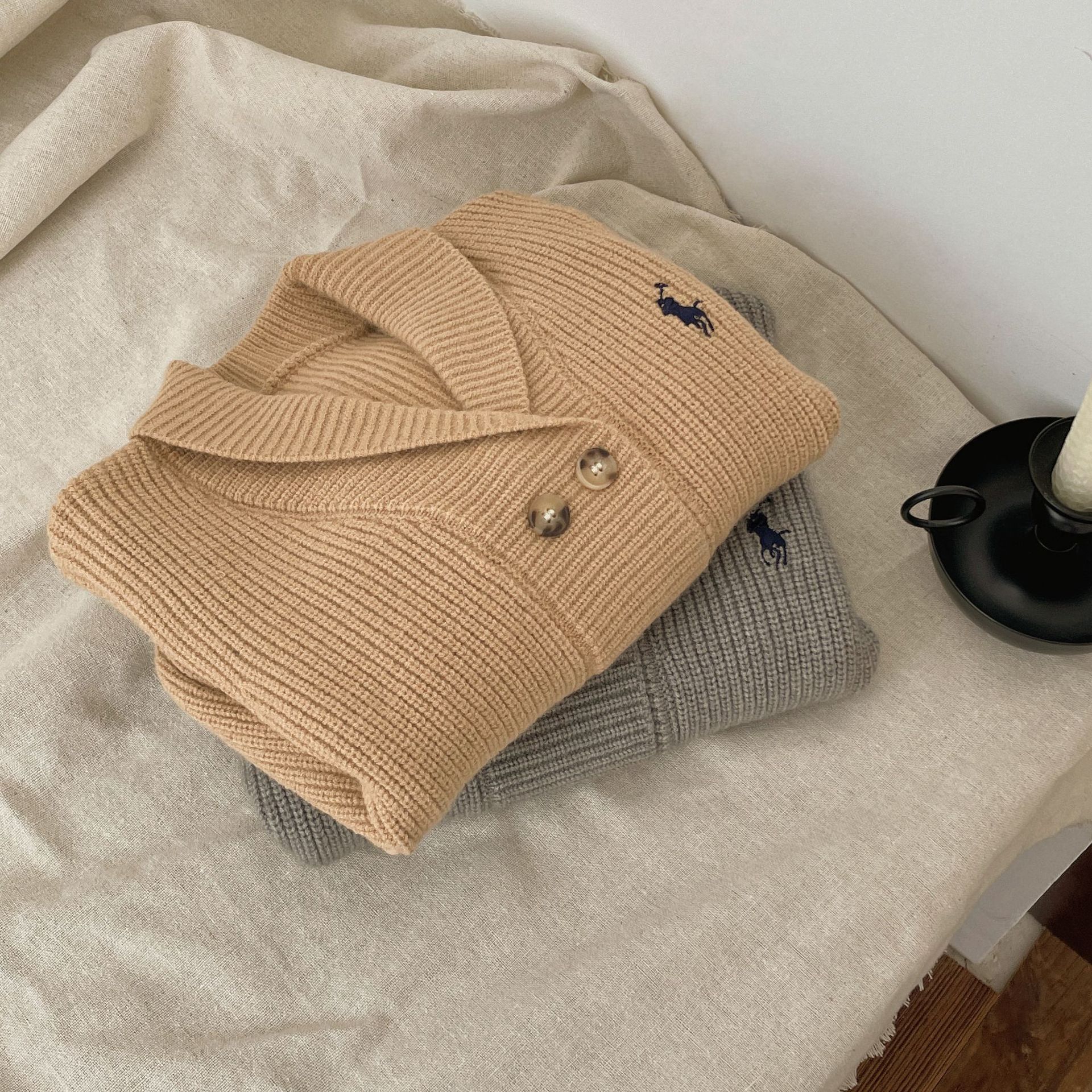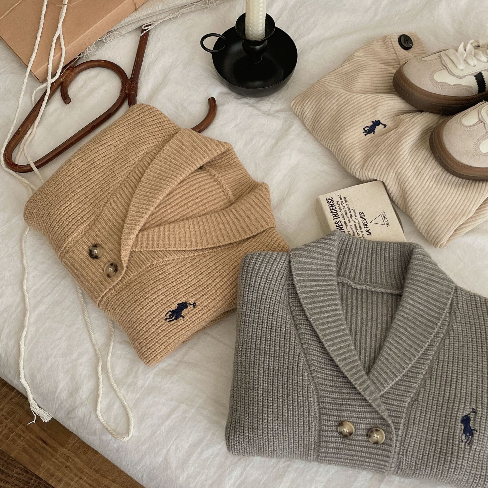2025 가을, 겨울 새로운 스타일 옷깃 다목적 복고풍 더블 브레스트 스웨터 소년과 소녀를위한 한국 스타일 자수 서양식 니트 가디건