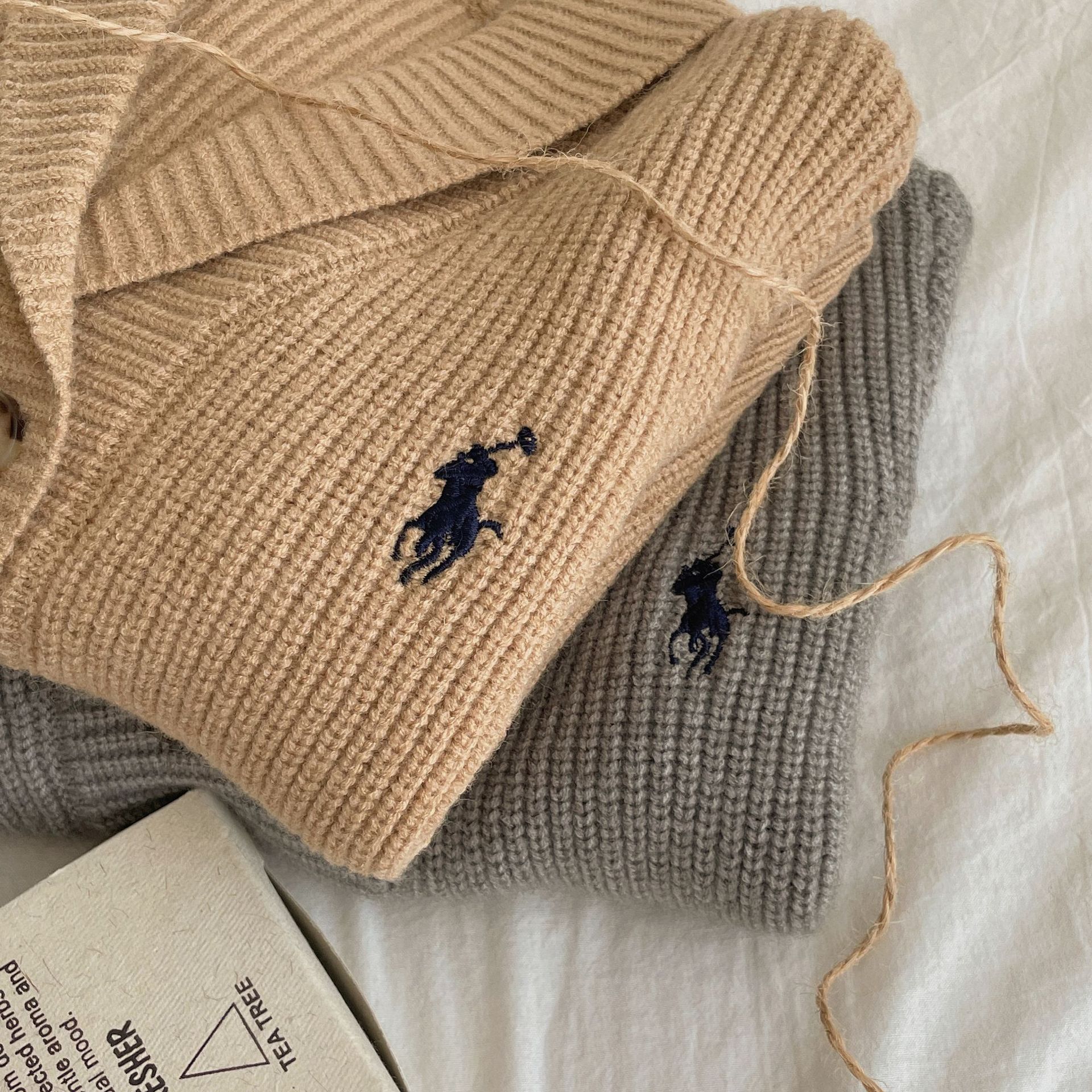 2025 가을, 겨울 새로운 스타일 옷깃 다목적 복고풍 더블 브레스트 스웨터 소년과 소녀를위한 한국 스타일 자수 서양식 니트 가디건스토어 가기