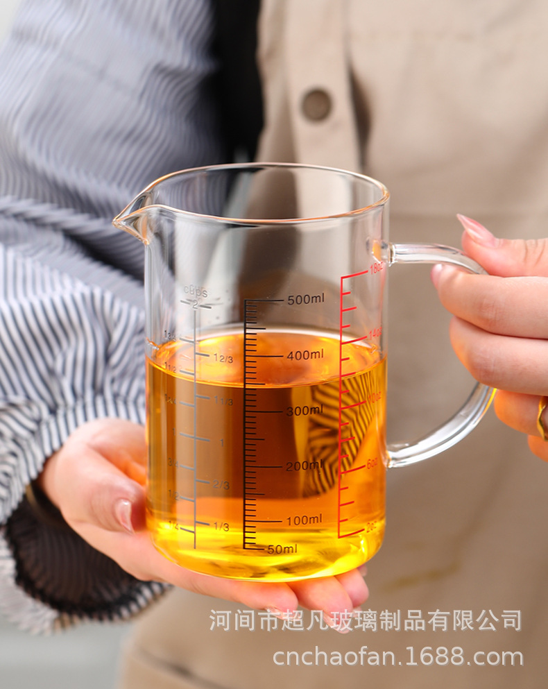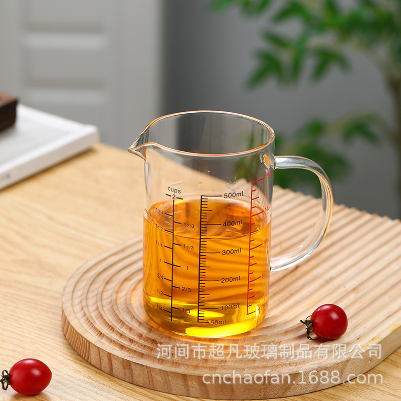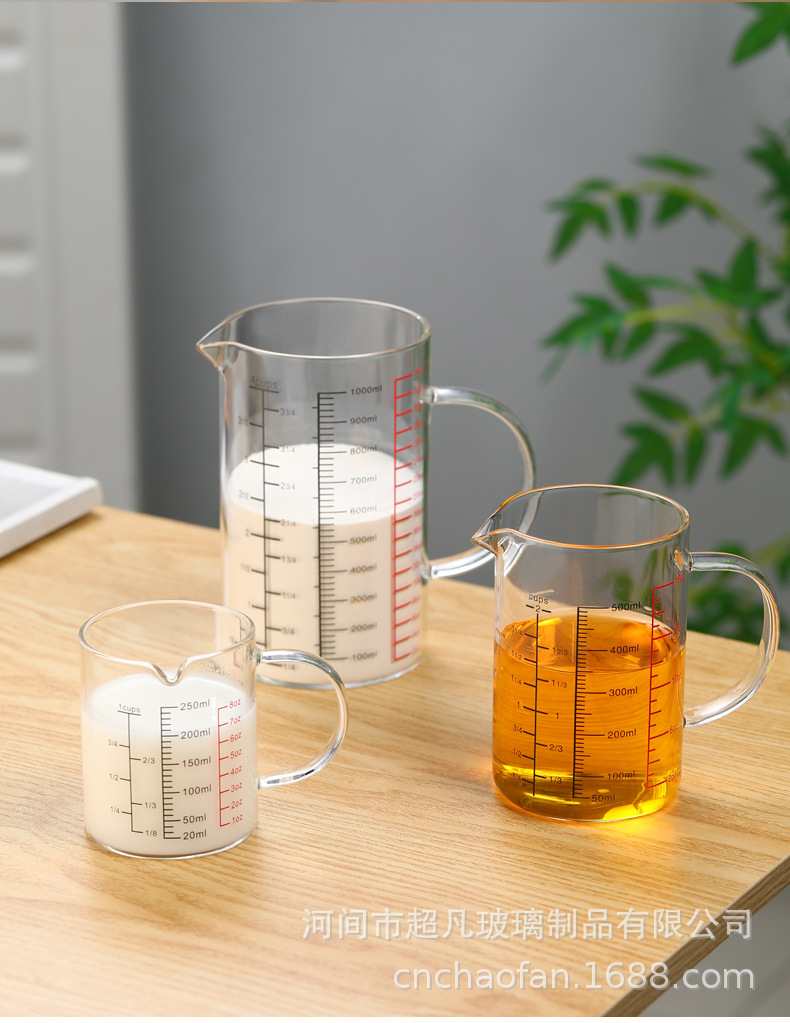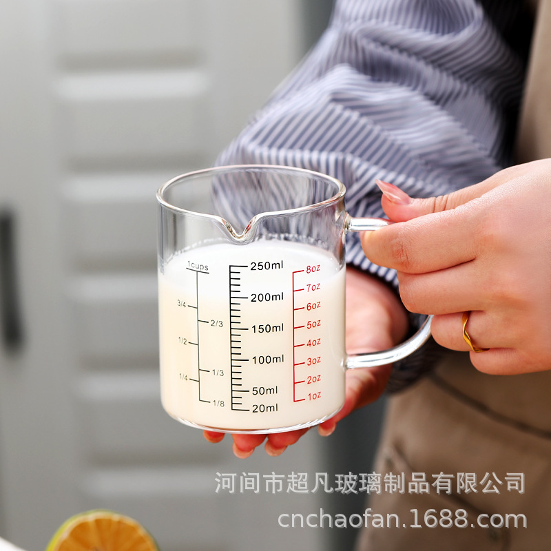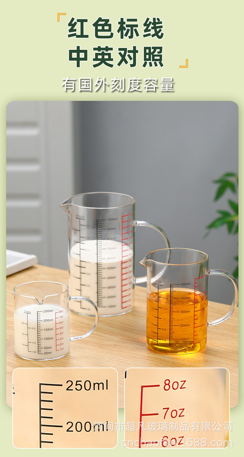 국제 규격 계량컵 해외 표준 계량컵 고붕규산 내열유리 레드 라벨 중국어-영어 겸용 눈금 조리기구 베이킹용