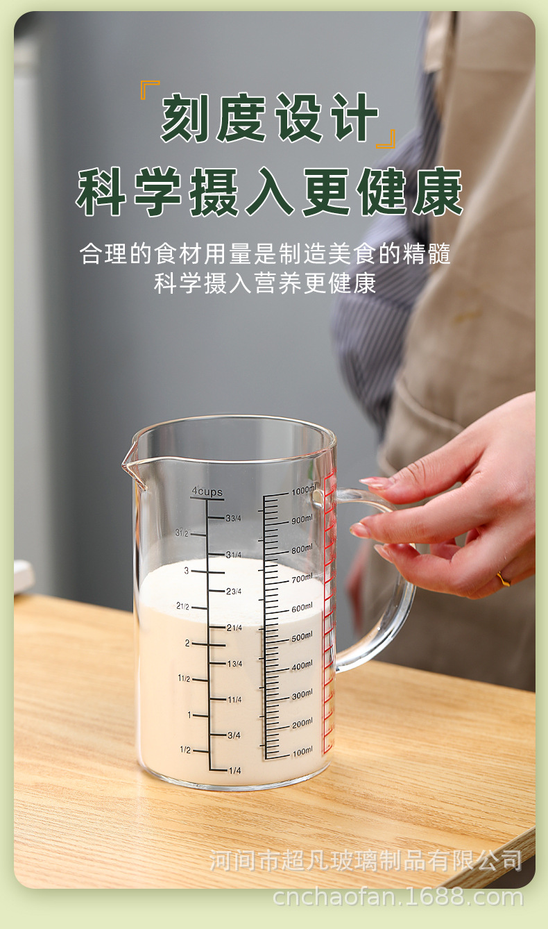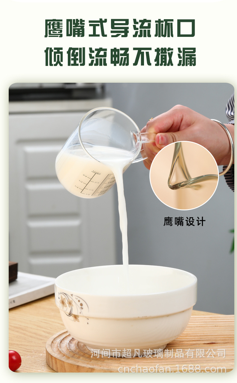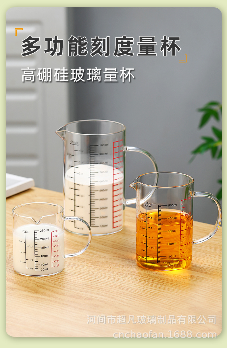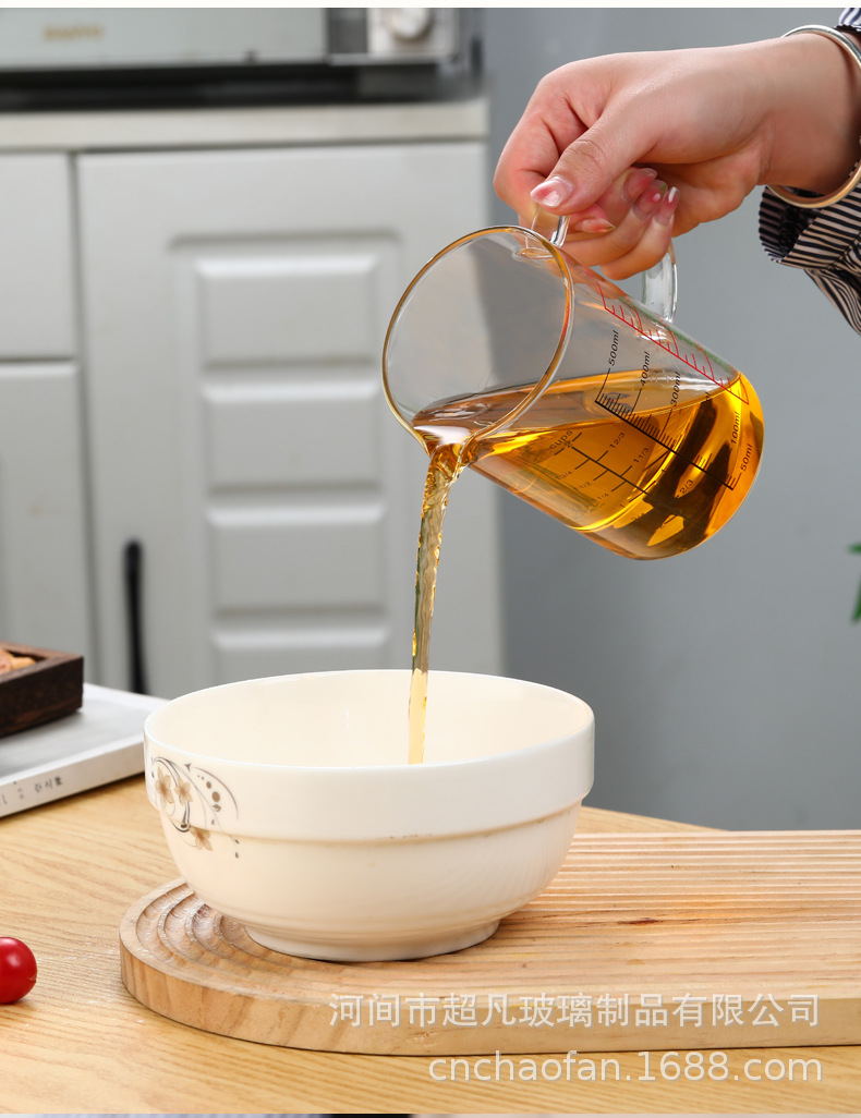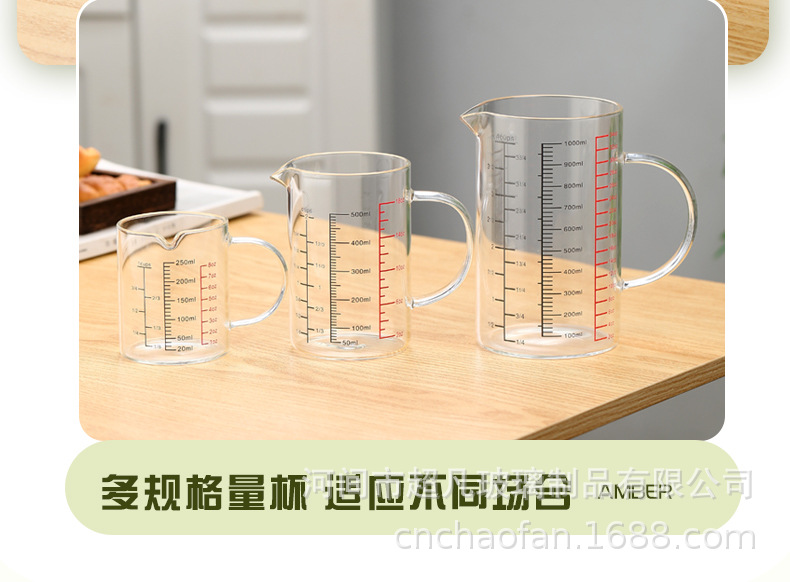국제 규격 계량컵 해외 표준 계량컵 고붕규산 내열유리 레드 라벨 중국어-영어 겸용 눈금 조리기구 베이킹용