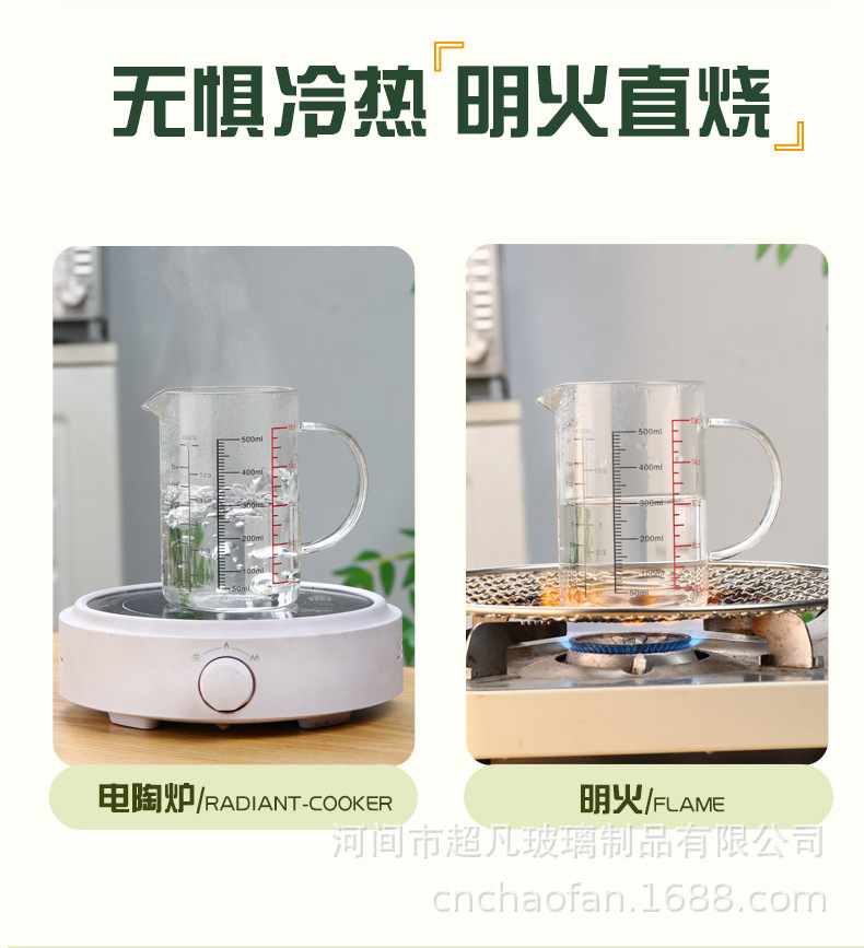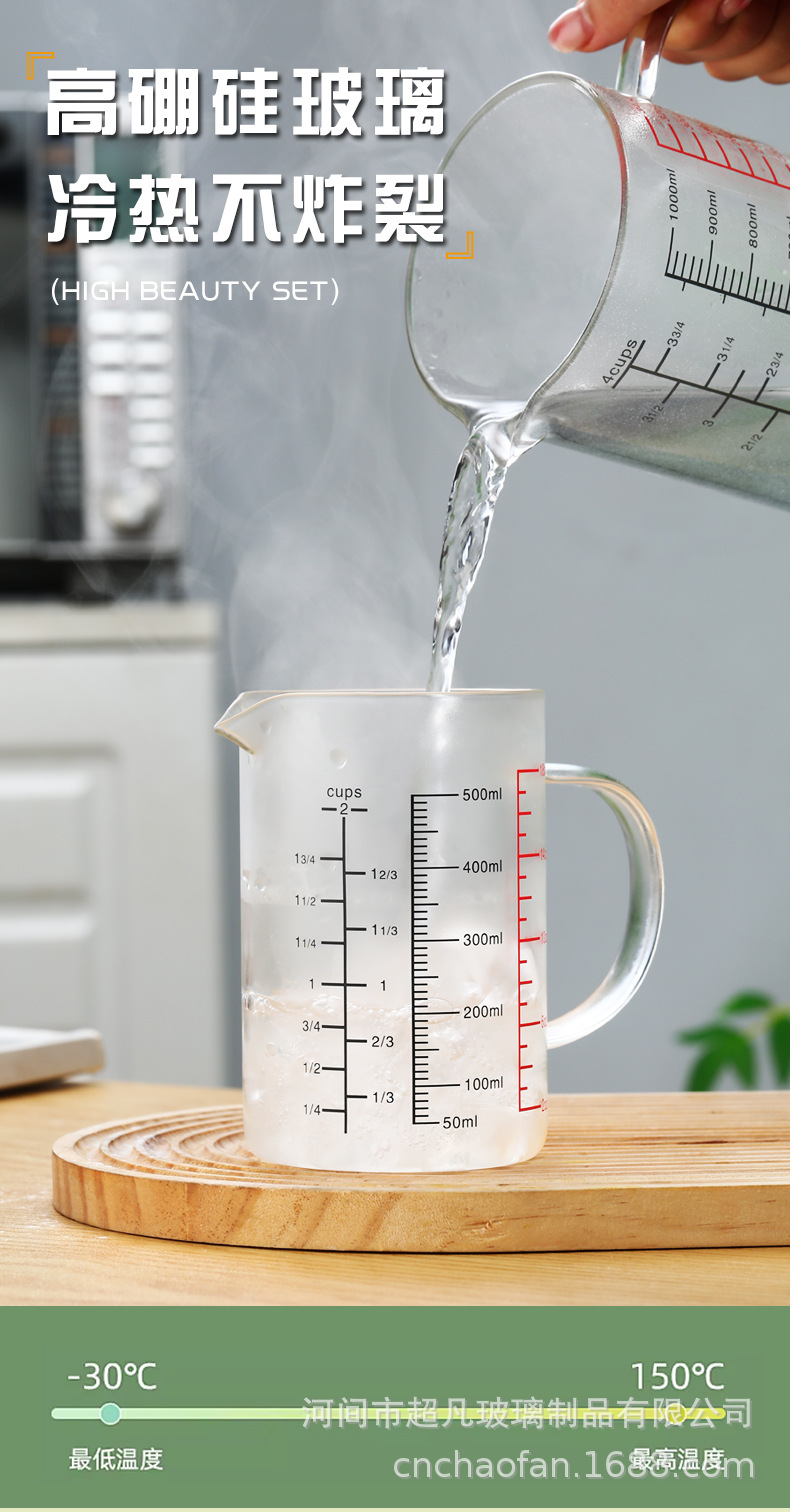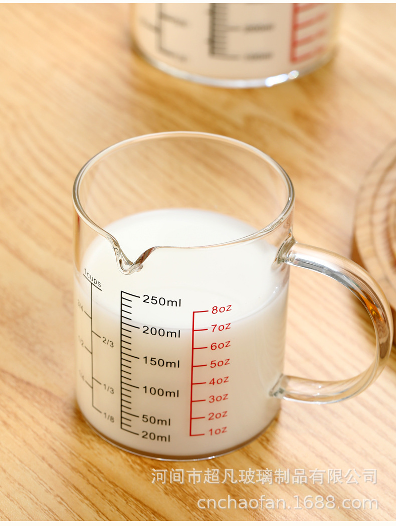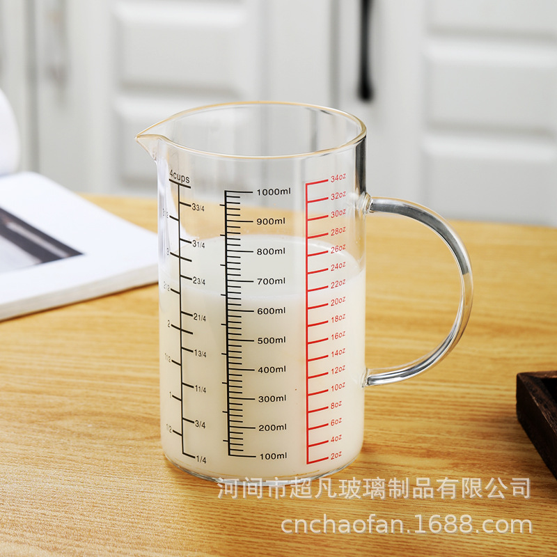 국제 규격 계량컵 해외 표준 계량컵 고붕규산 내열유리 레드 라벨 중국어-영어 겸용 눈금 조리기구 베이킹용스토어 가기