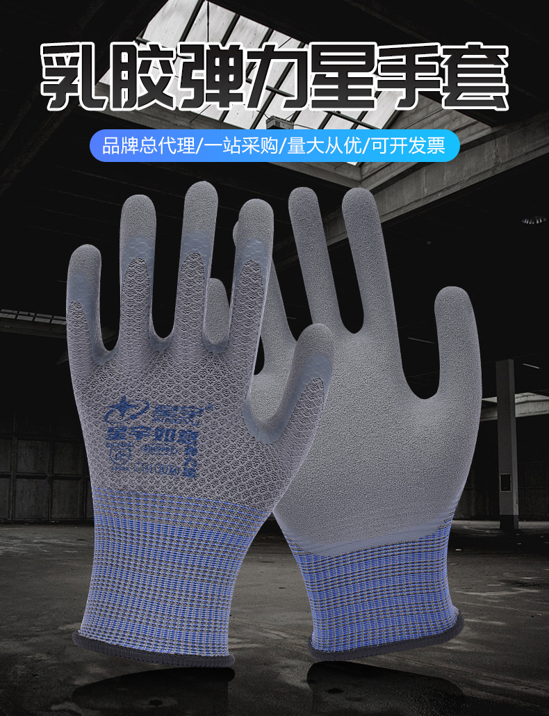 Xingyu Ruyi 탄성 스타 장갑 노동 보호 비 슬립 내마모성 탄성 내구성 통기성 노동 보호 접착제 코팅스토어 가기