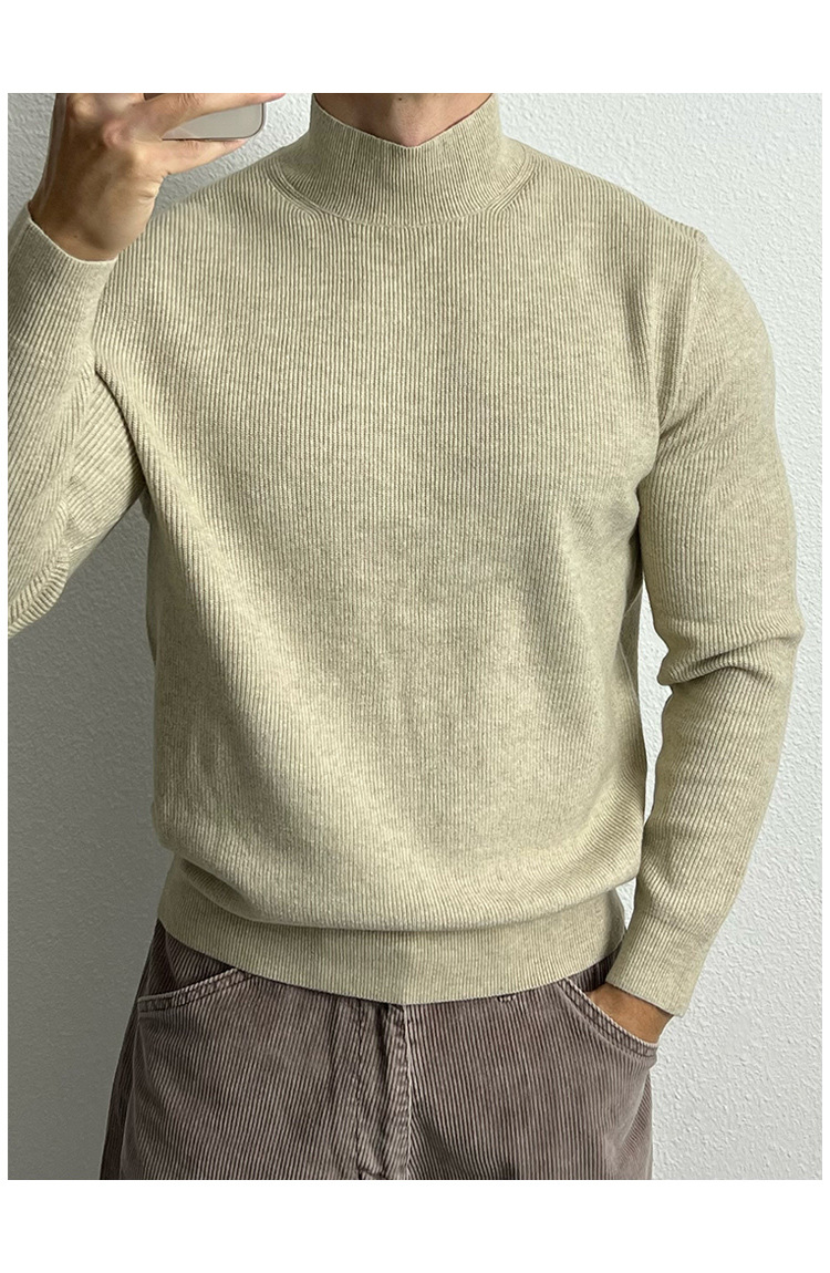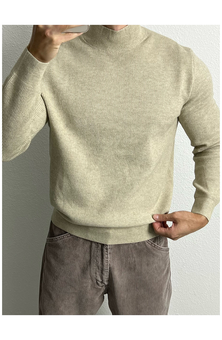 유럽의 반 높이 칼라 코어 스핀 원사 운동복 남성 터프 가이 슬림 핏 긴팔 스웨터 미드 칼라베이스 스웨터 트렌디