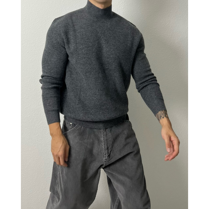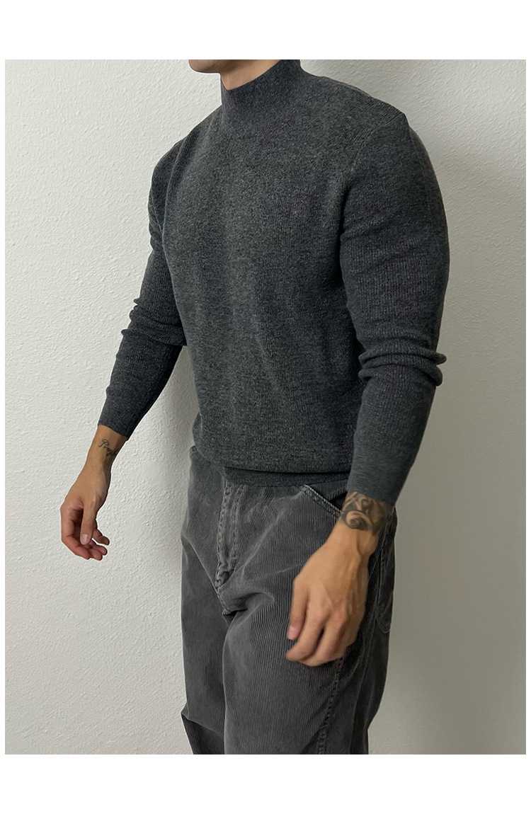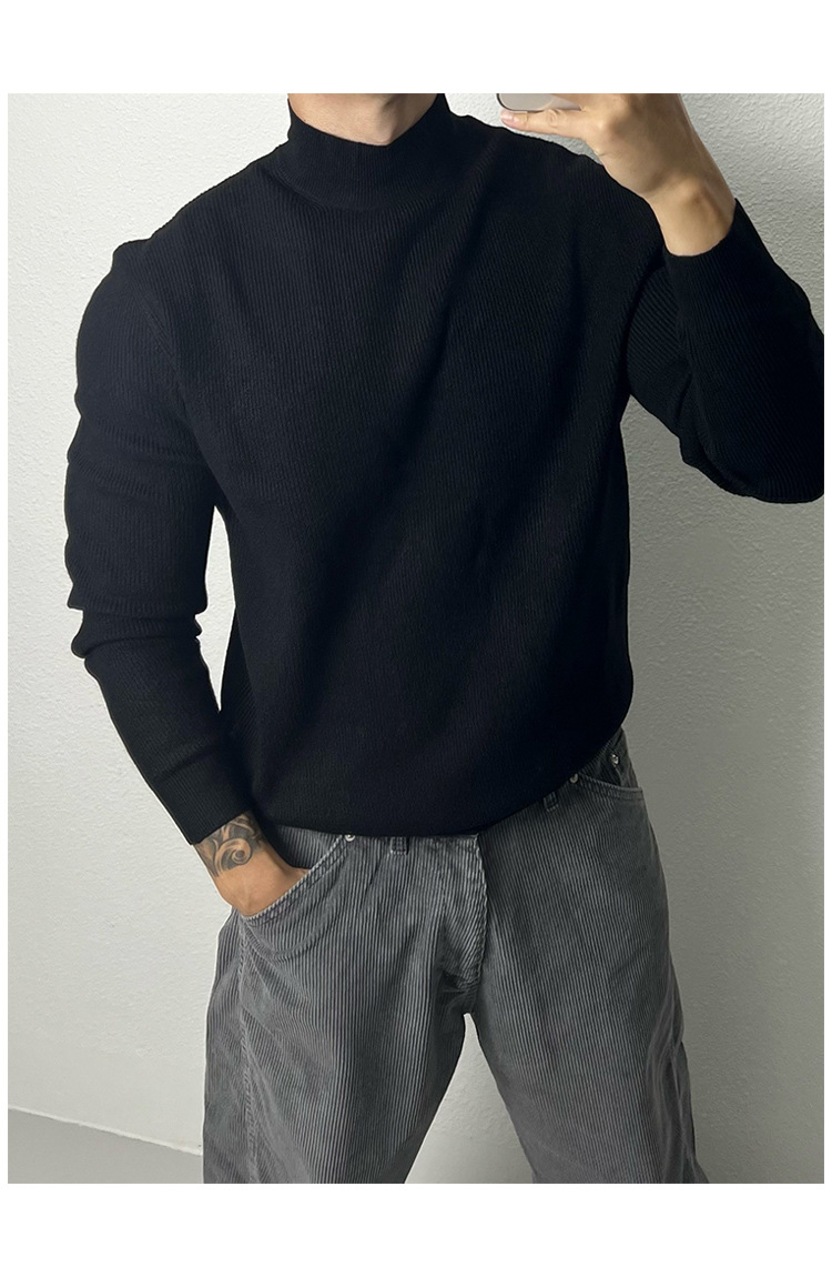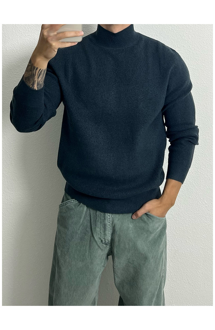 유럽의 반 높이 칼라 코어 스핀 원사 운동복 남성 터프 가이 슬림 핏 긴팔 스웨터 미드 칼라베이스 스웨터 트렌디스토어 가기