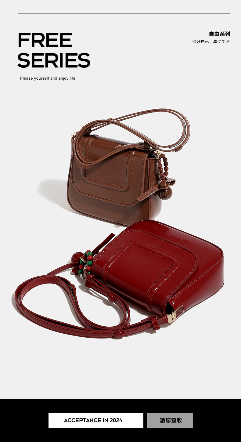 오리지널 레드 웨딩 백 작은 스퀘어 가방 여성 2024 가을 겨울 새로운 슈퍼 인기있는 올 매치 안장 가방 고급 어깨 크로스 바디 백
