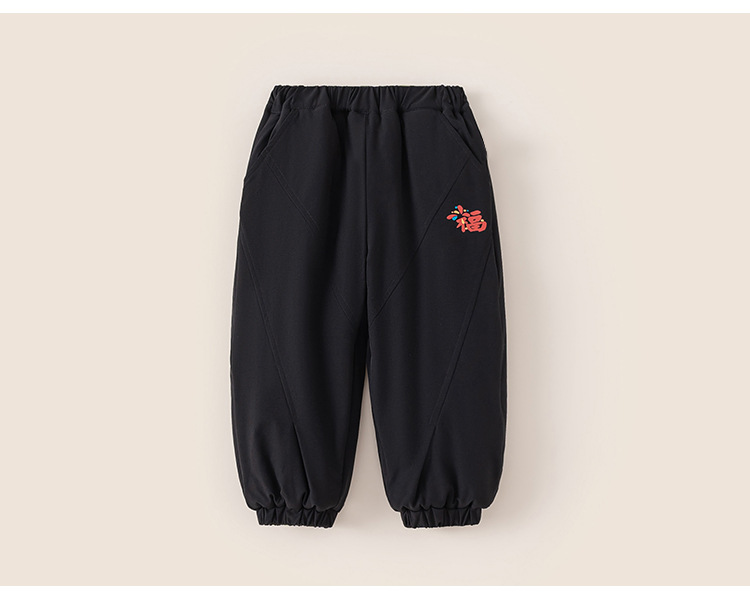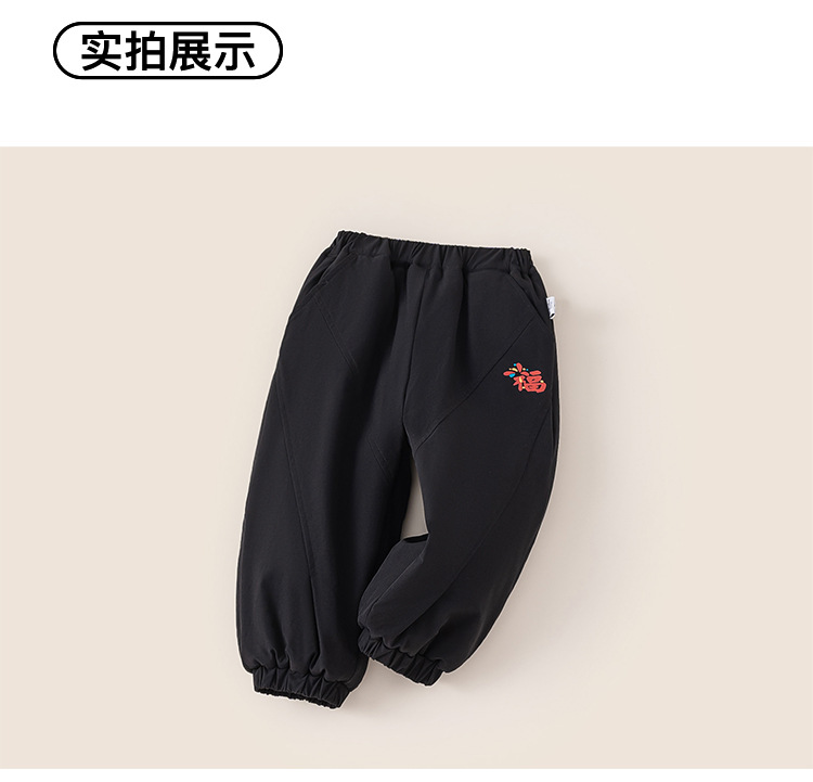 유바오 아동복 아동면 바지 새해 복 겨울 2024 새 소년 캐주얼 바지 두꺼운 발 발가락 스위트 바지스토어 가기