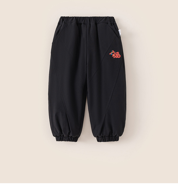 유바오 아동복 아동면 바지 새해 복 겨울 2024 새 소년 캐주얼 바지 두꺼운 발 발가락 스위트 바지