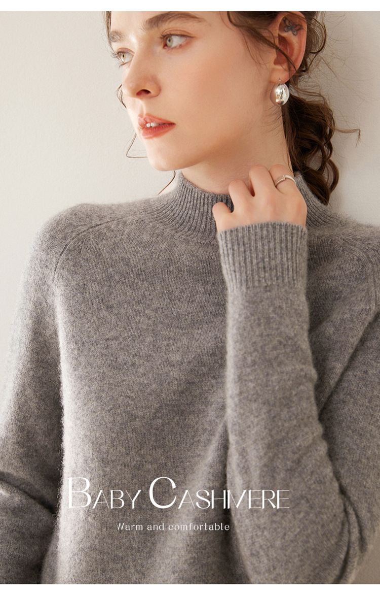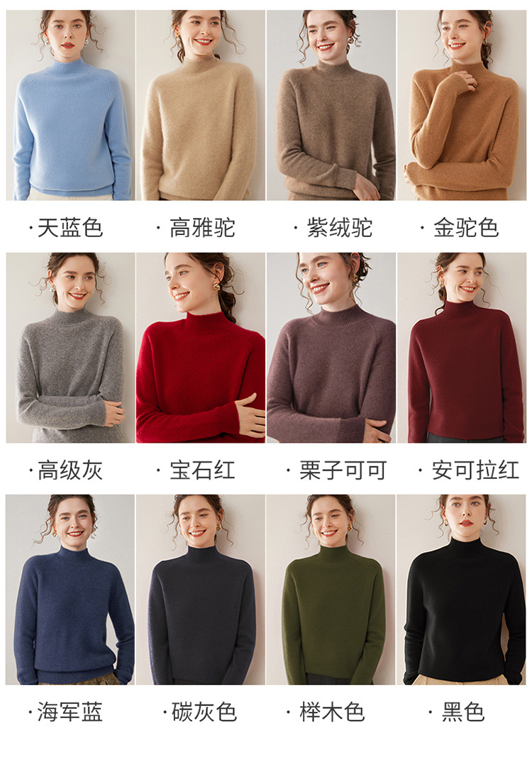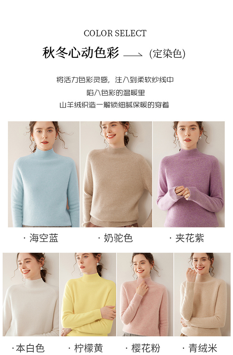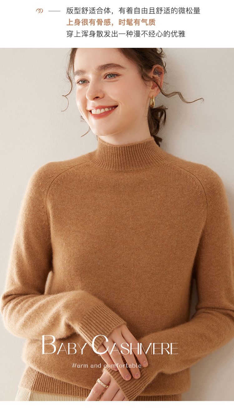 오르도스시 100% 순수 캐시미어 여성용 하프 터틀넥 두꺼운 루즈핏 슬림핏 피부친화적인 니트 베이스 스웨터
