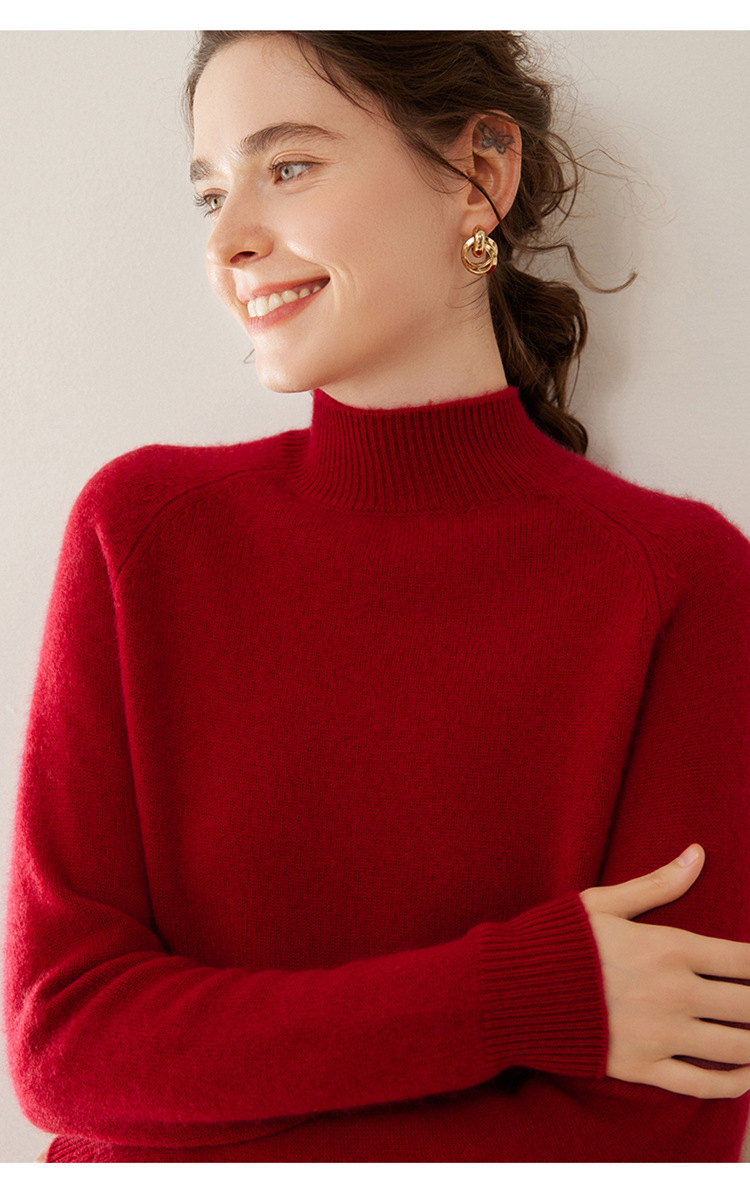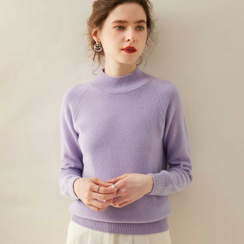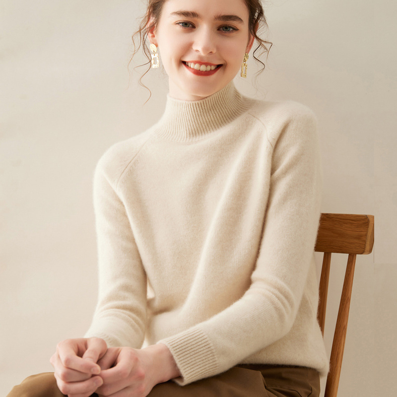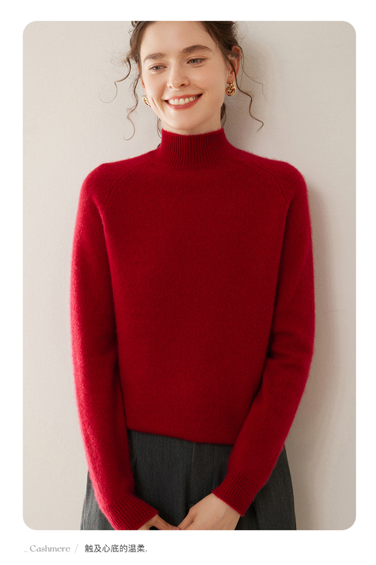 오르도스시 100% 순수 캐시미어 여성용 하프 터틀넥 두꺼운 루즈핏 슬림핏 피부친화적인 니트 베이스 스웨터