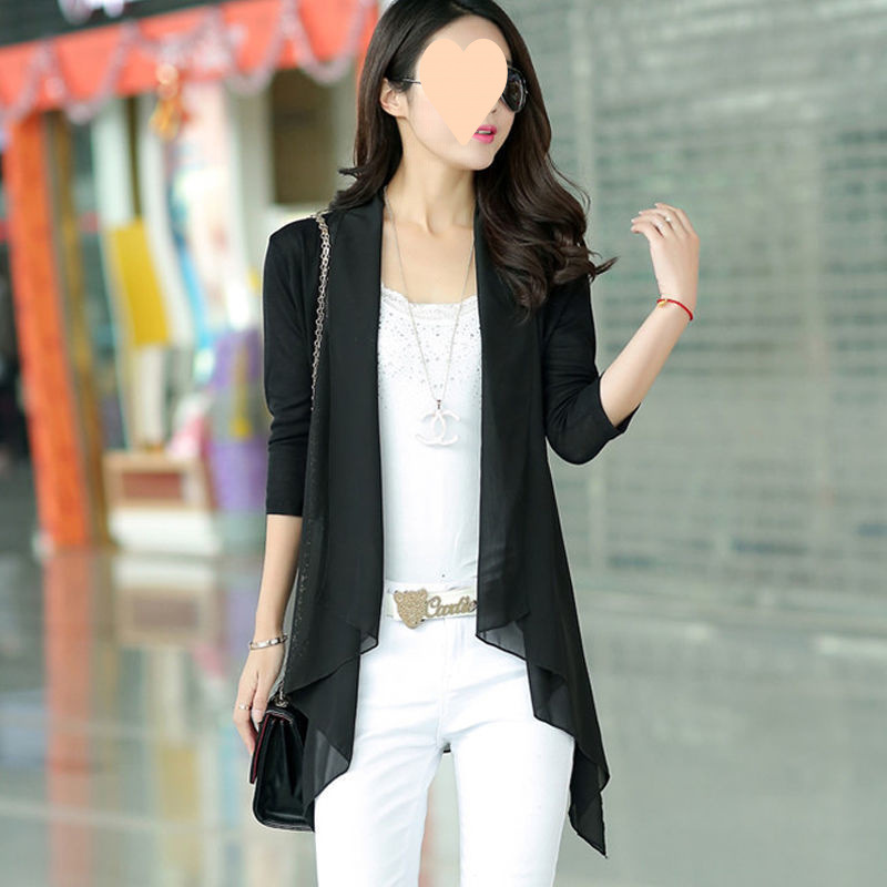 시폰 셔츠 여성 여름 2024 새로운 반소매 탑 얇은 카디건 외복 여성용 중간 길이의 건조 재킷 목도리 트렌디스토어 가기