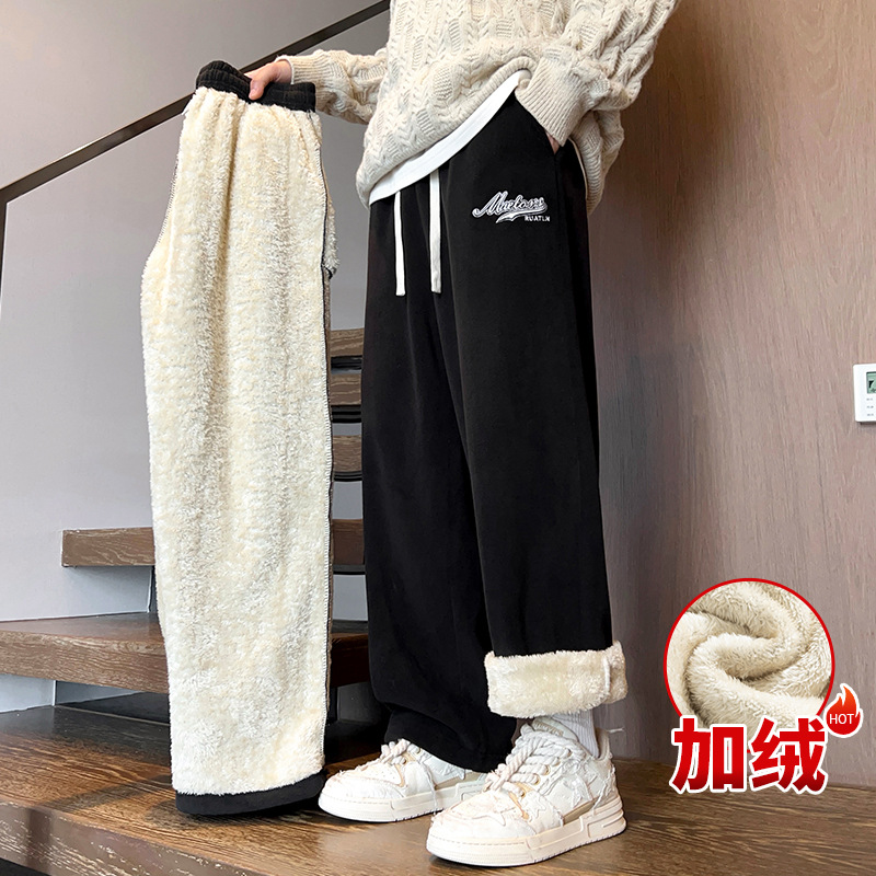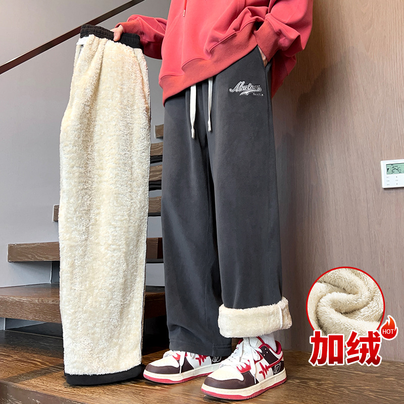 양털 바지 남성용 겨울 2025 신상 기모 두꺼운 남성 캐주얼 면바지 가을 겨울용 스트레이트 팬츠