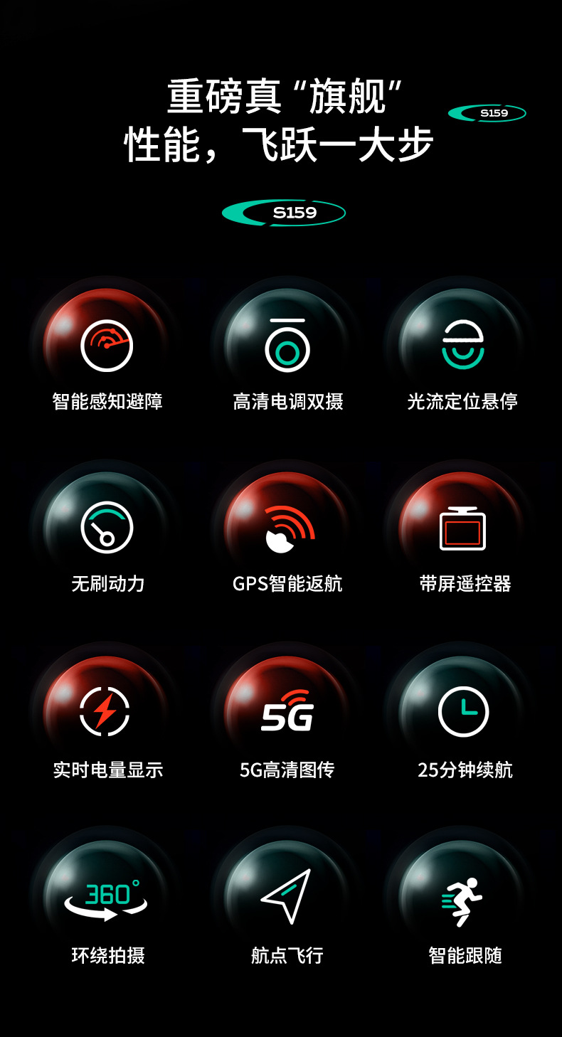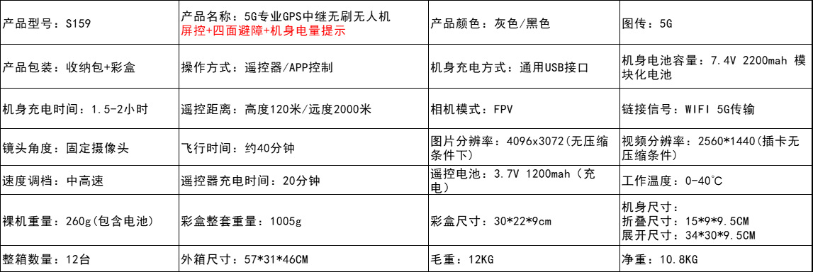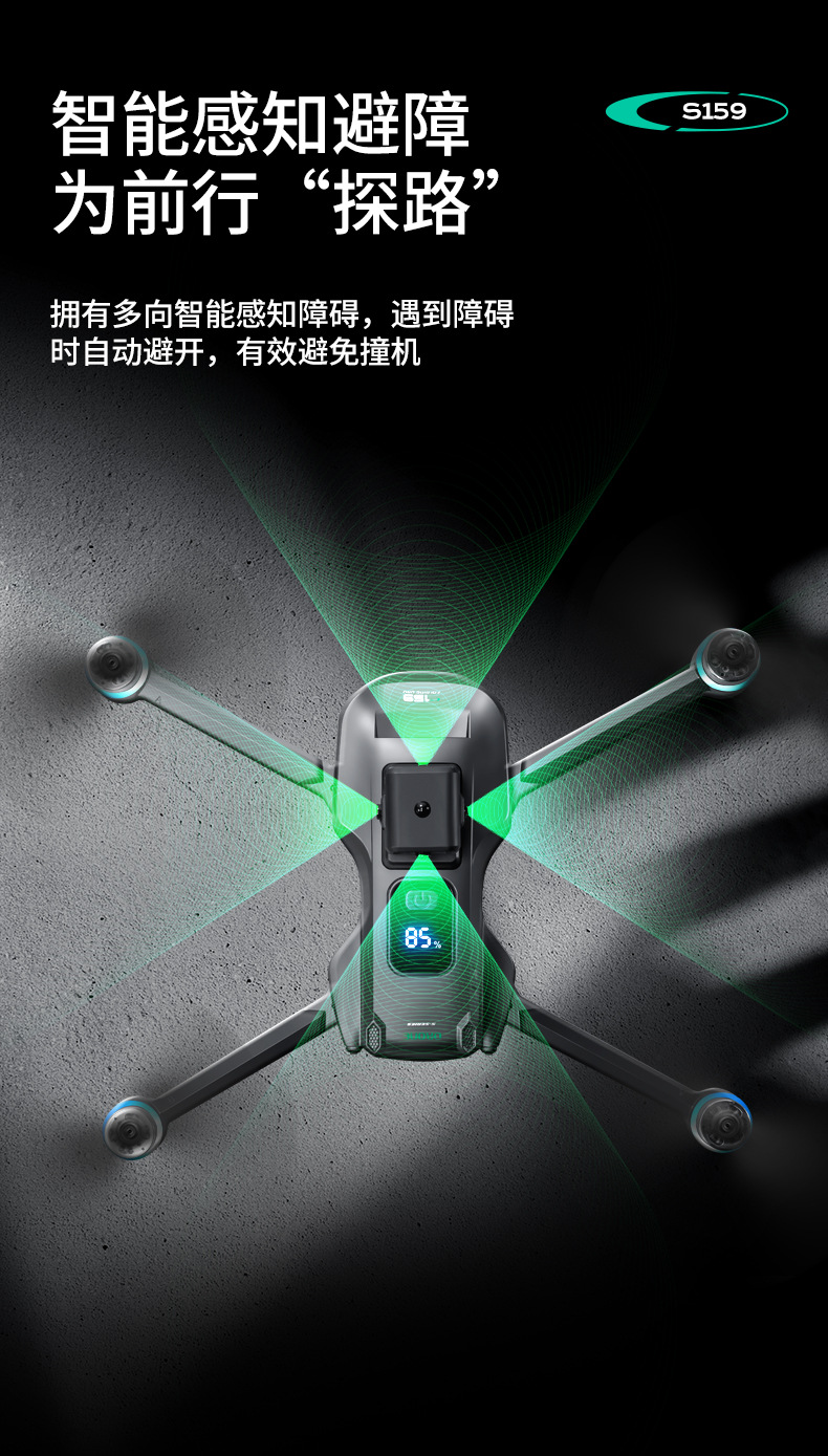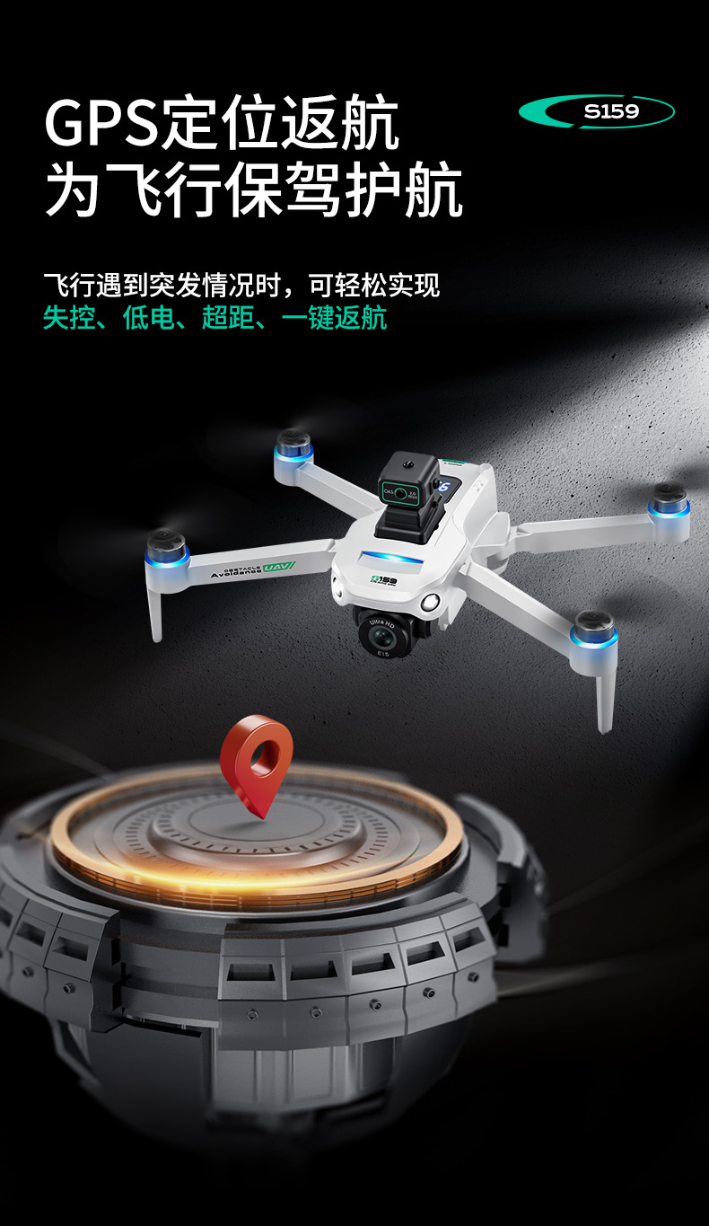 국경 간 S159 UAV 장애물 회피 광학 흐름 스마트 스크린 GPS 원격 제어 브러시리스 항공기 5G 사진 전송 쿼드 콥터스토어 가기