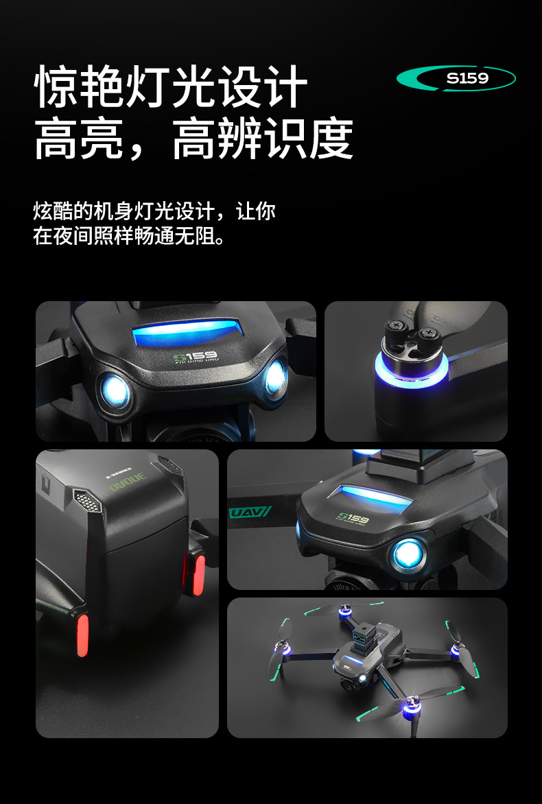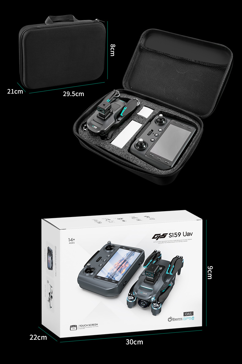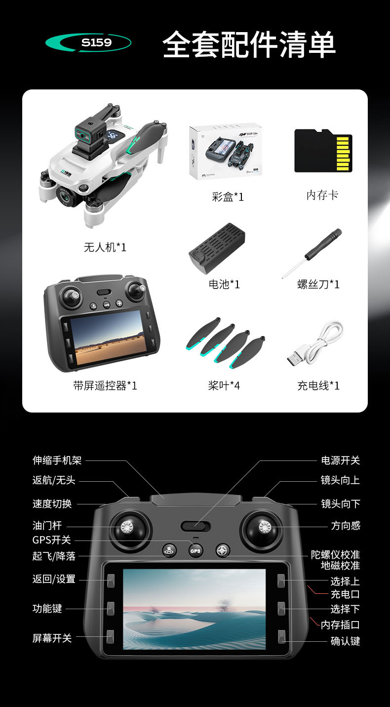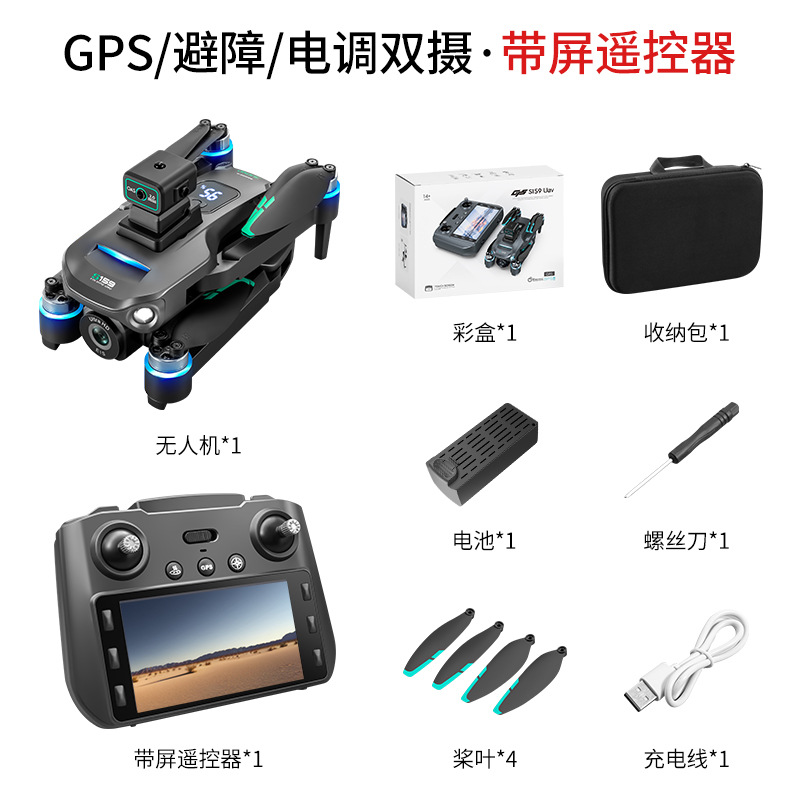 국경 간 S159 UAV 장애물 회피 광학 흐름 스마트 스크린 GPS 원격 제어 브러시리스 항공기 5G 사진 전송 쿼드 콥터