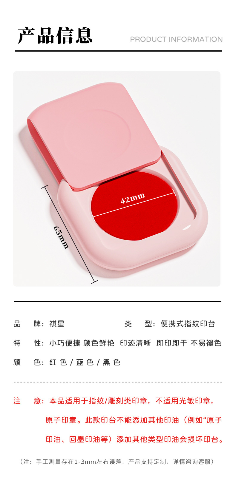 Qixing 휴대용 지문 인쇄 책상 작은 금융 사무실 인쇄 데스크 레드 블루 블랙 귀여운 손 계정 씰 인쇄 패드 특별스토어 가기