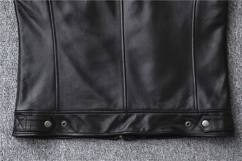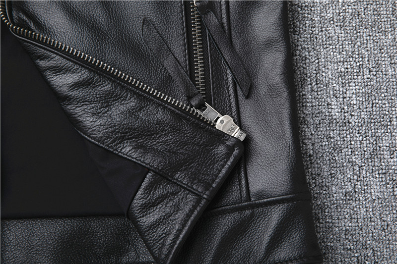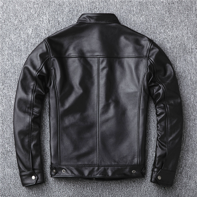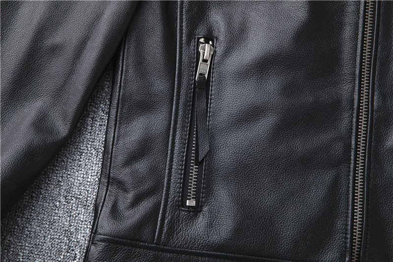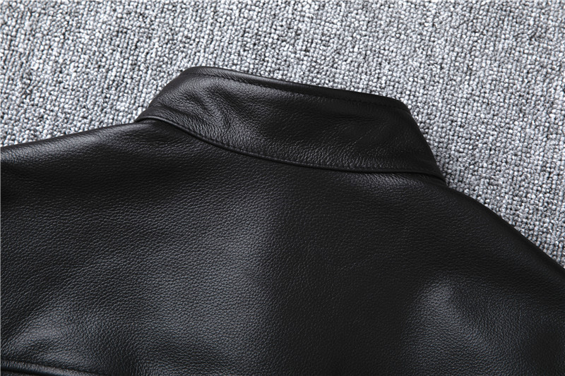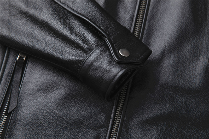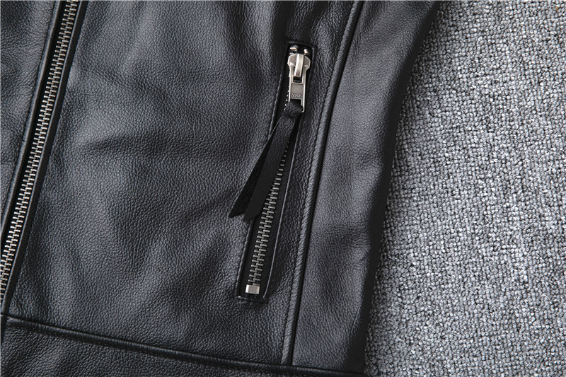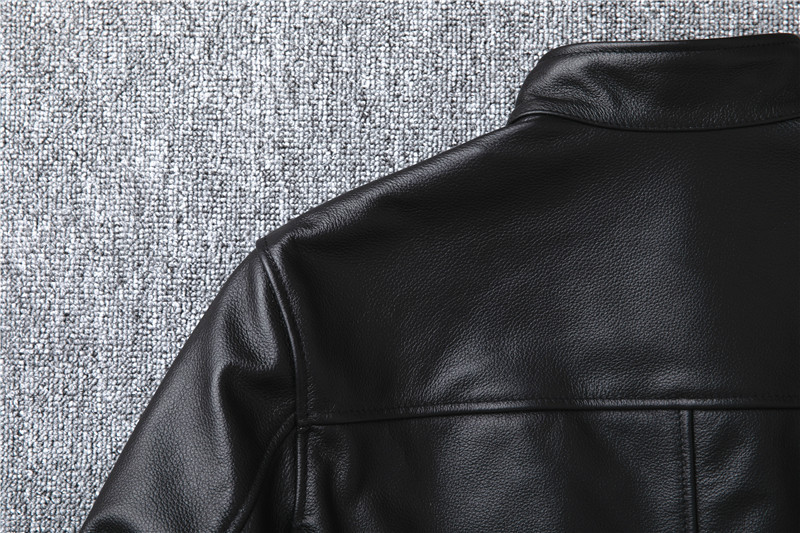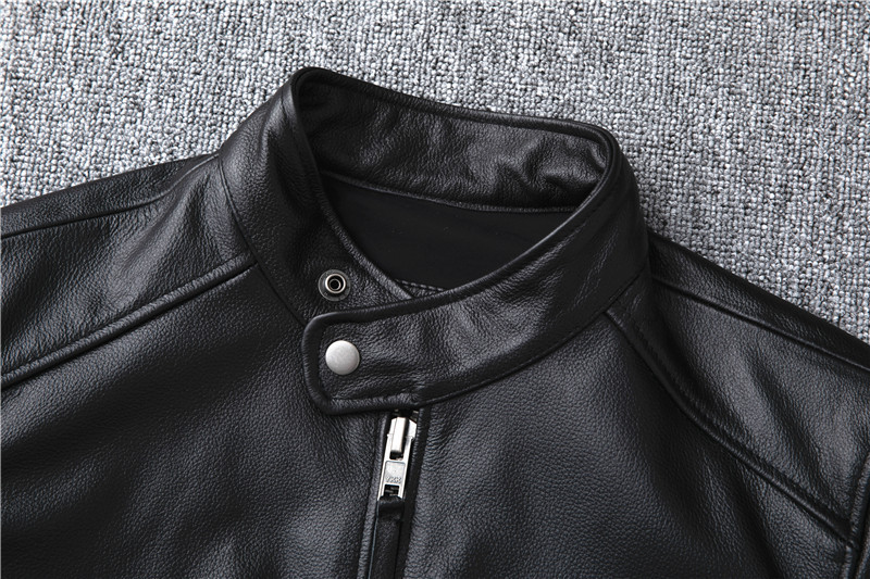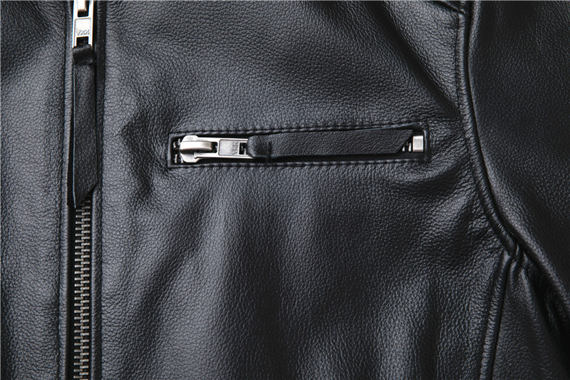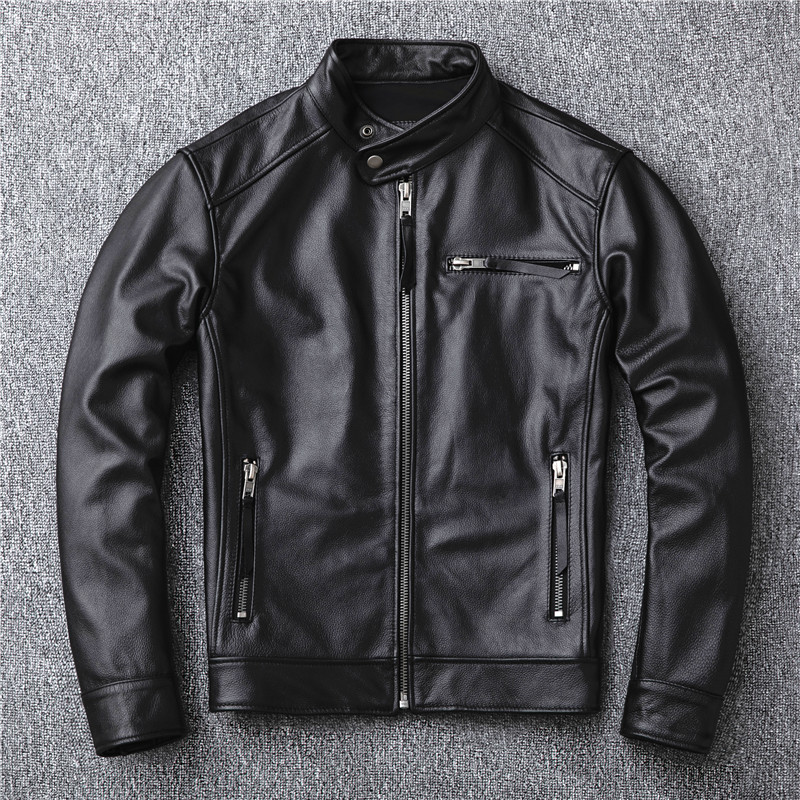 정품 가죽 남성용 칼프 스킨 짧은 핸섬 스탠드 칼라 젊고 중년의 유행 오토바이 싱글 가죽 자켓 코트스토어 가기