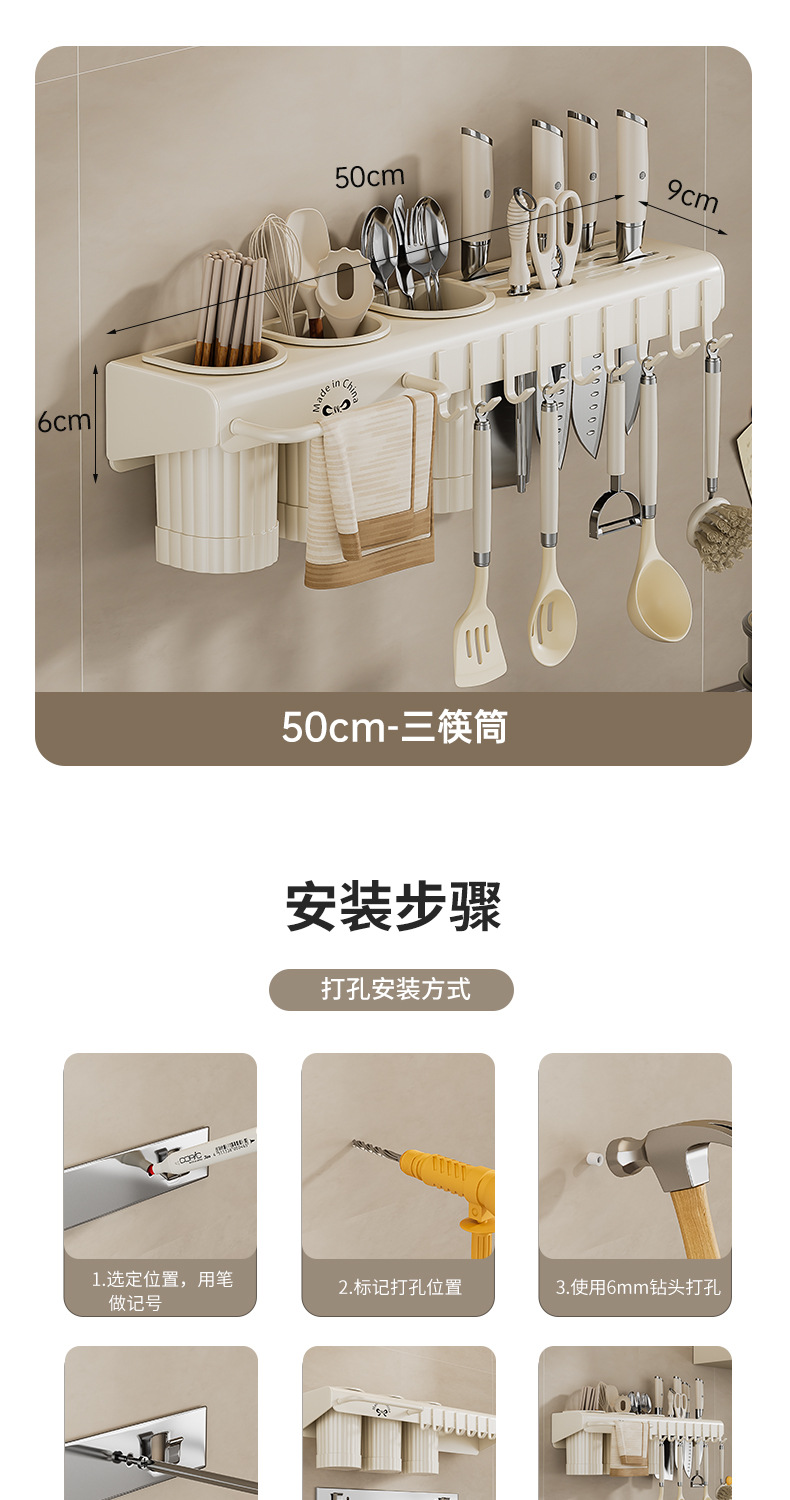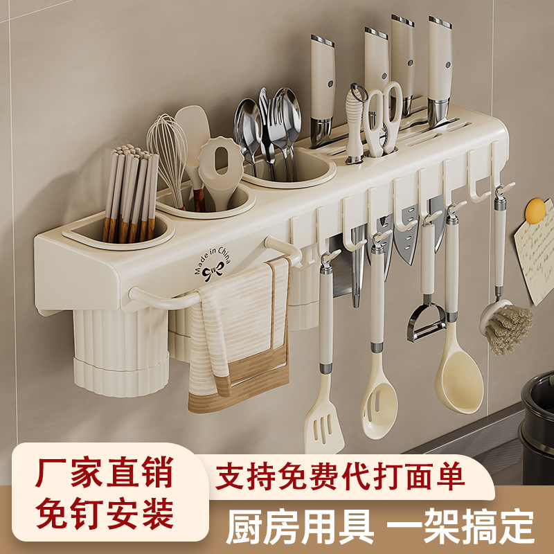 다기능 젓가락 보관 상자 벽걸이 형 펀치 프리 주방 칼 보관 랙 가정용 젓가락 케이지 바구니 통합 젓가락 홀더스토어 가기